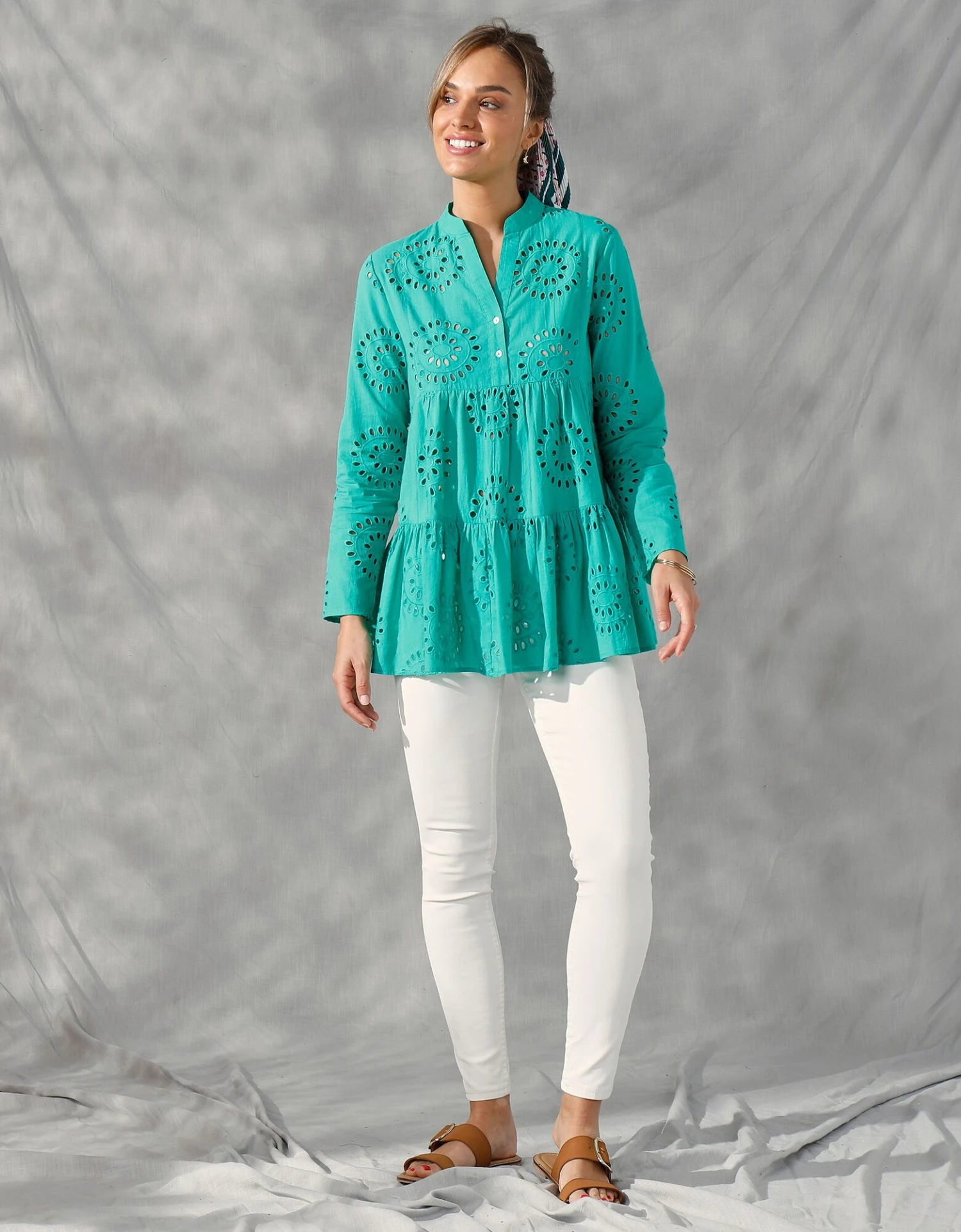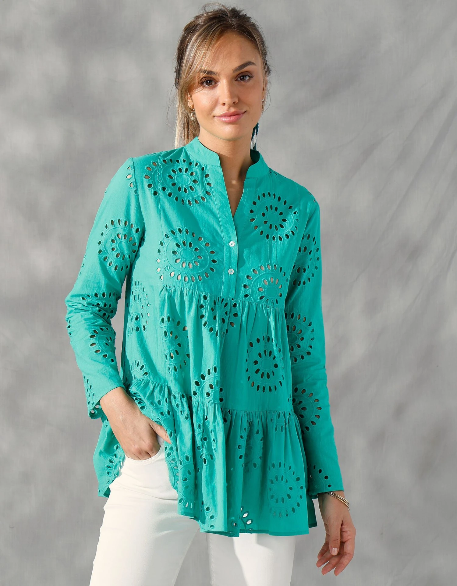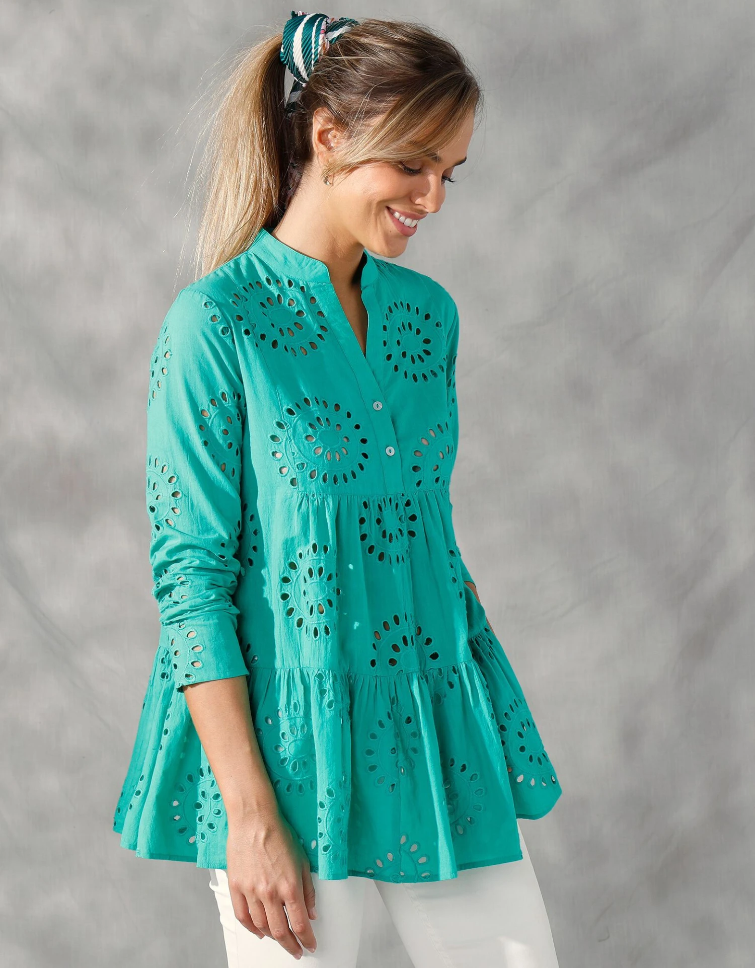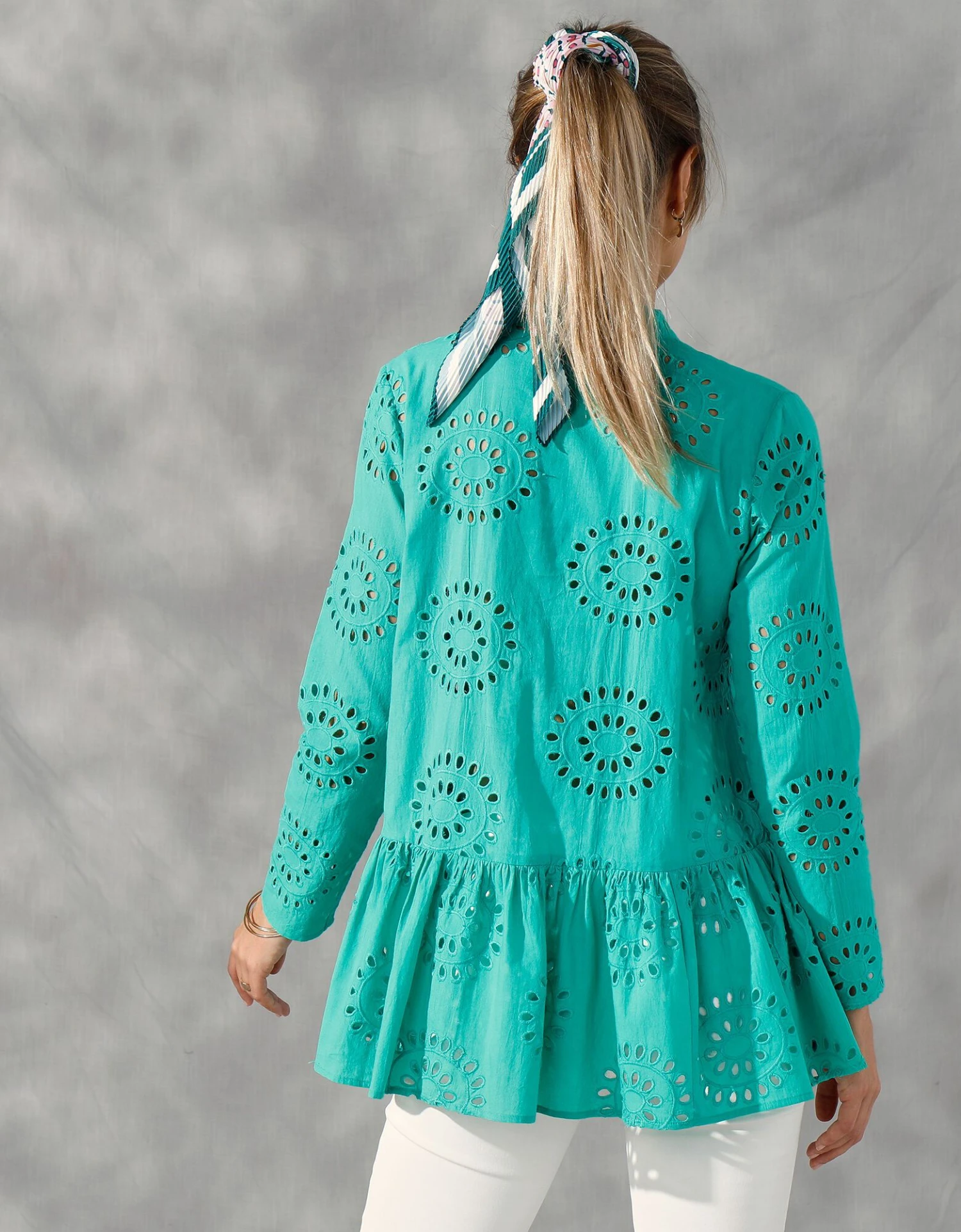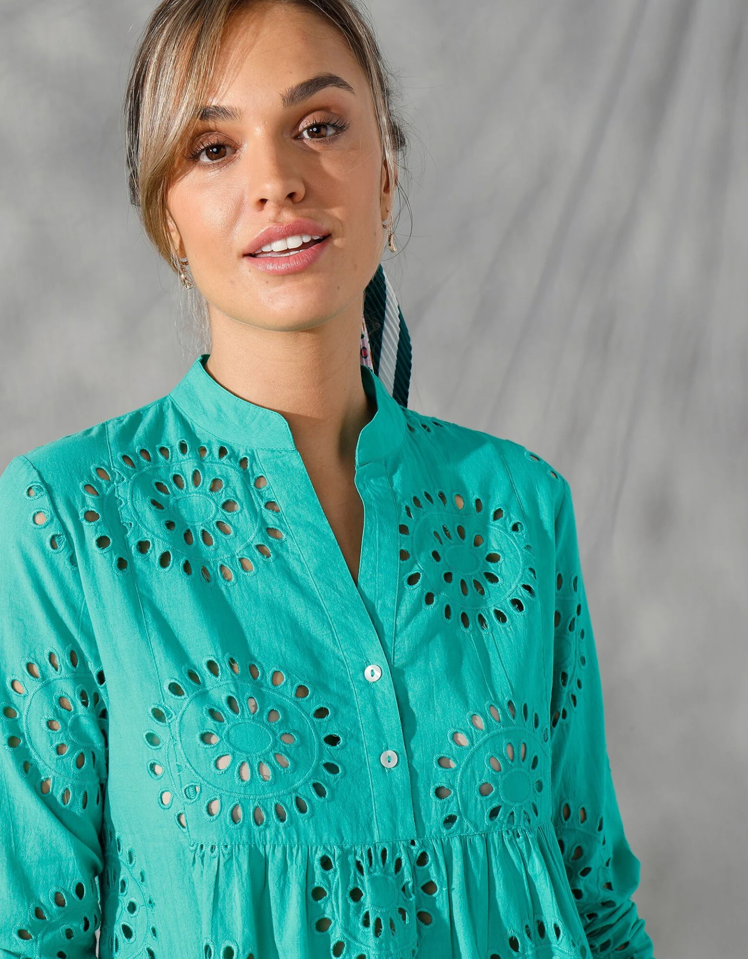 – Entièrement rehaussée de rosaces en broderie anglaise ajourée devant et dos