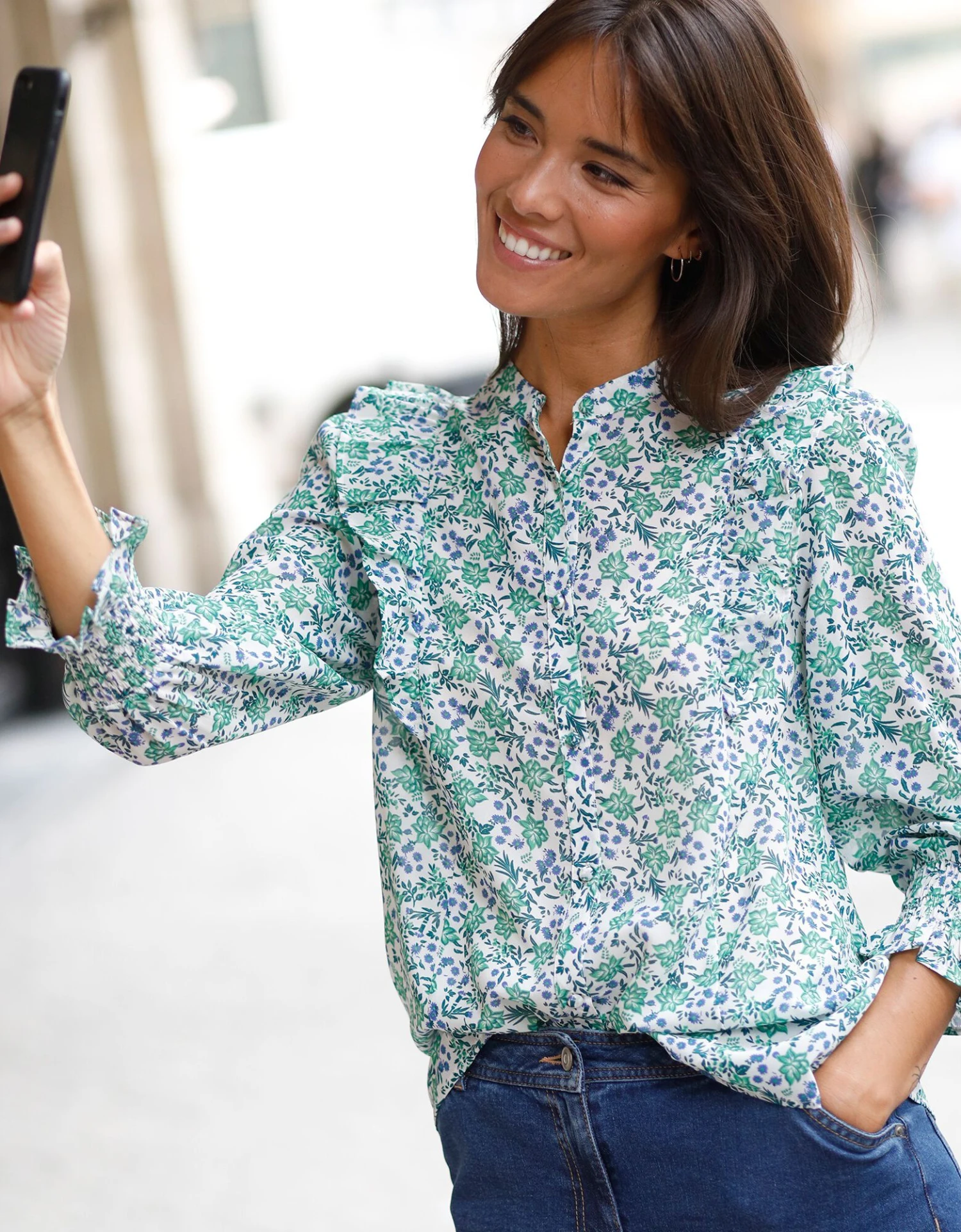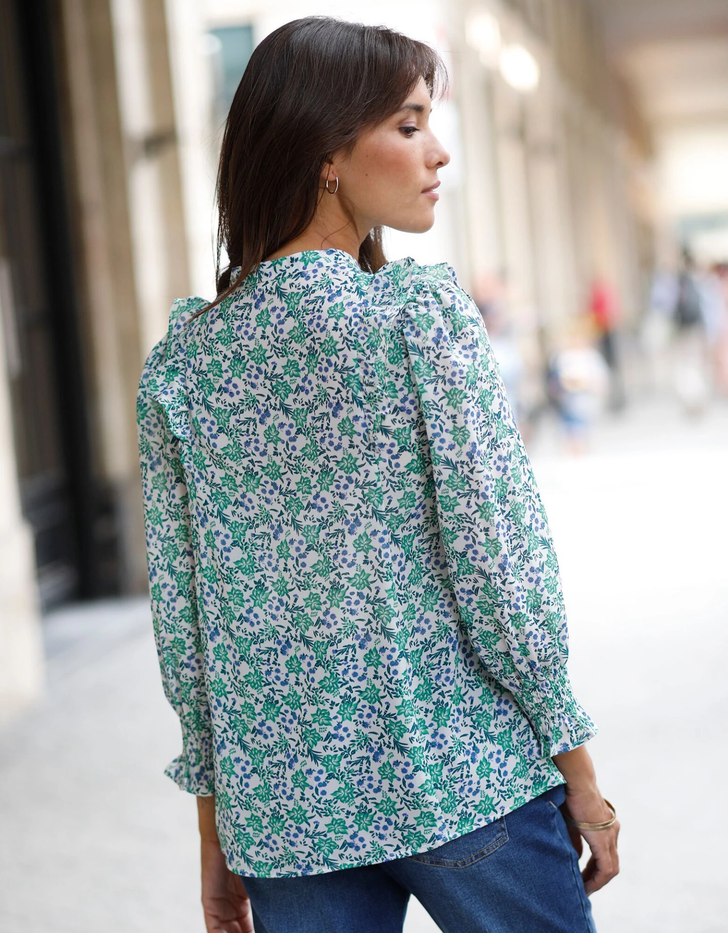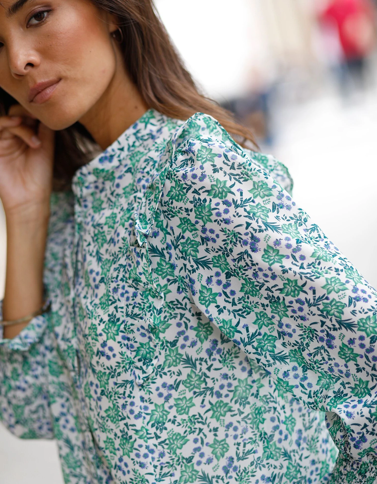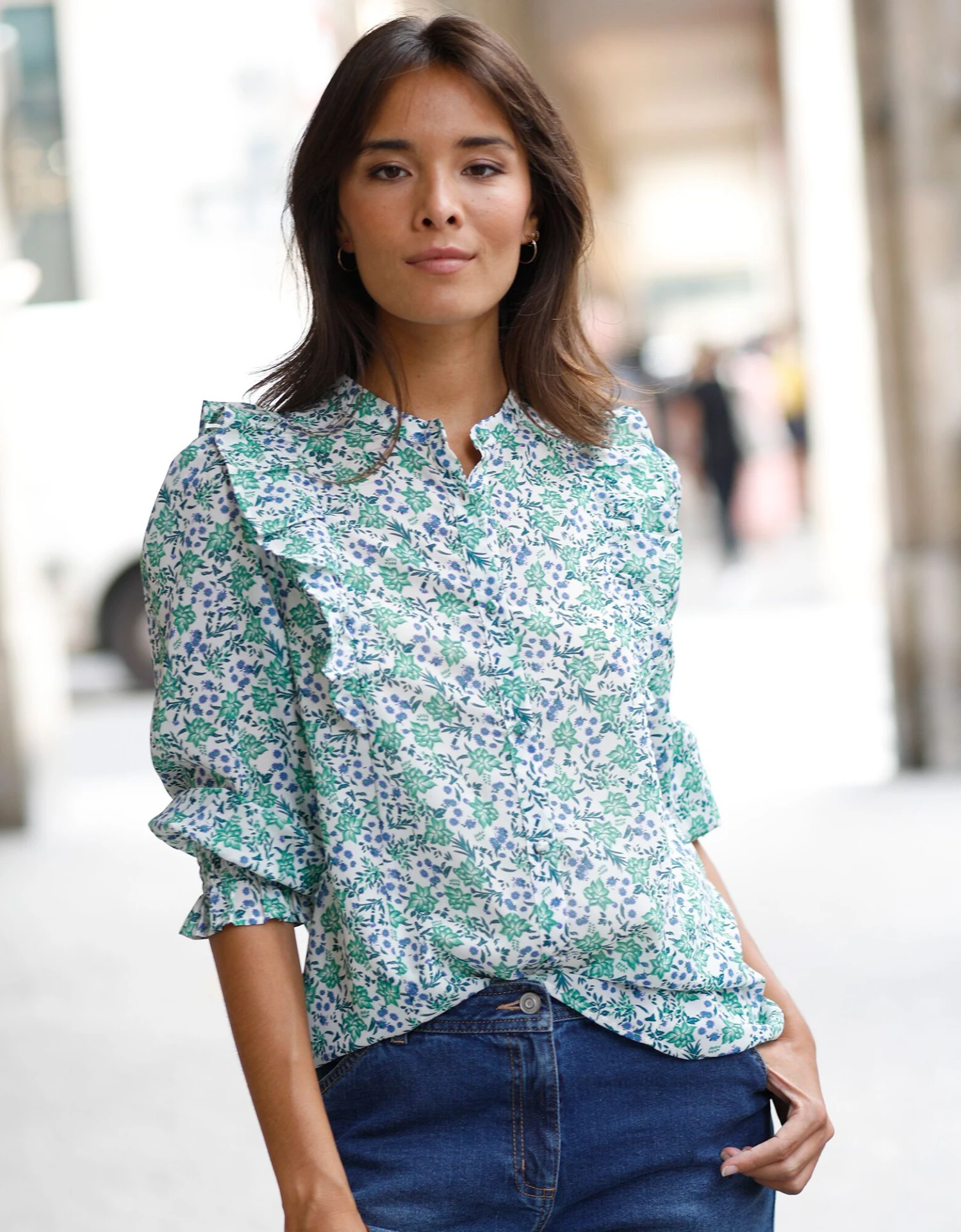 – Découpes bretelles avec volant froncé qui structurent la silhouette