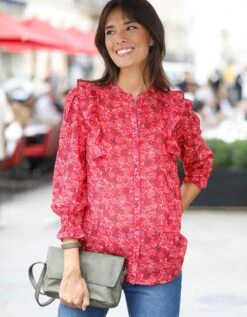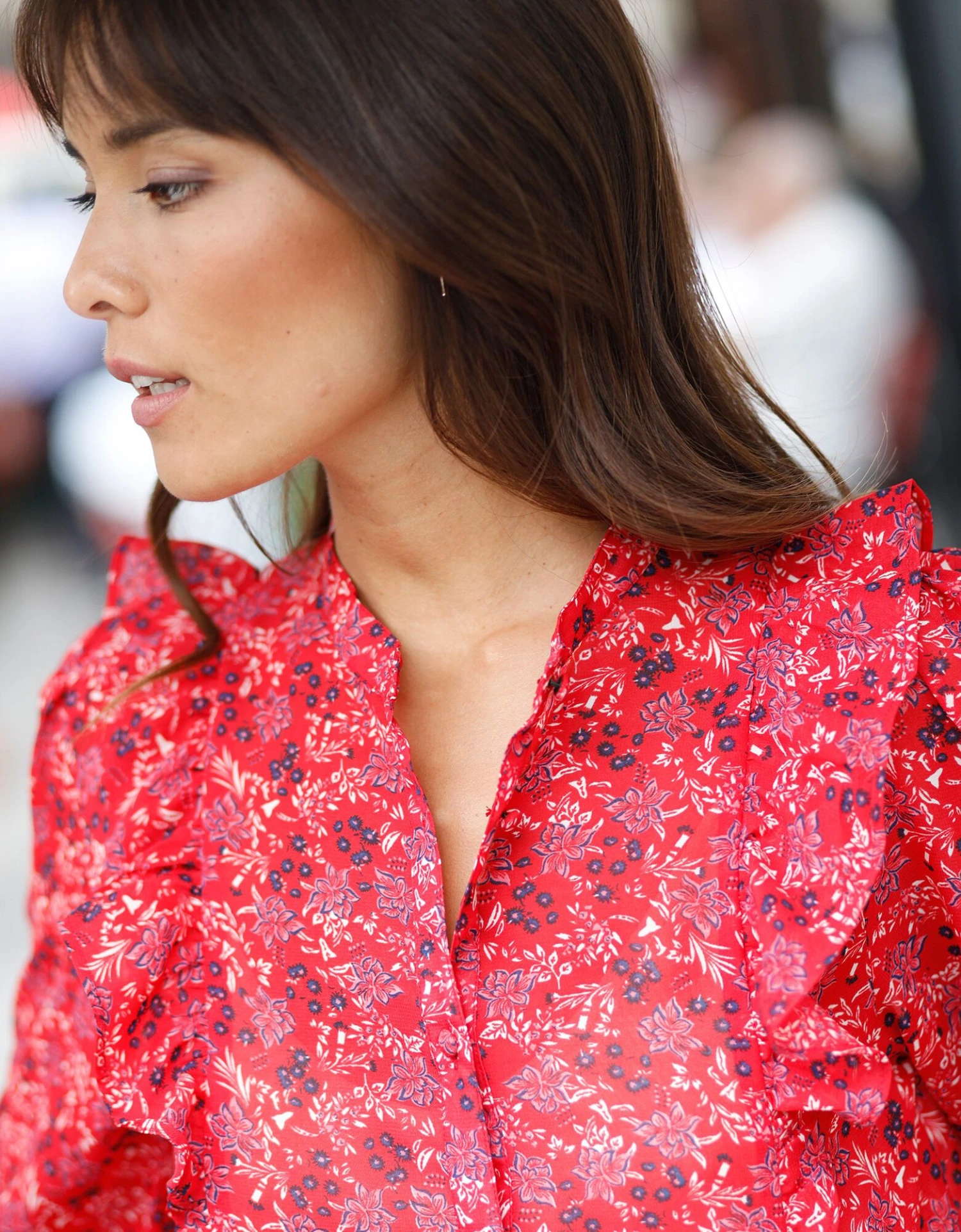 – Découpes bretelles avec volant froncé qui structurent la silhouette
