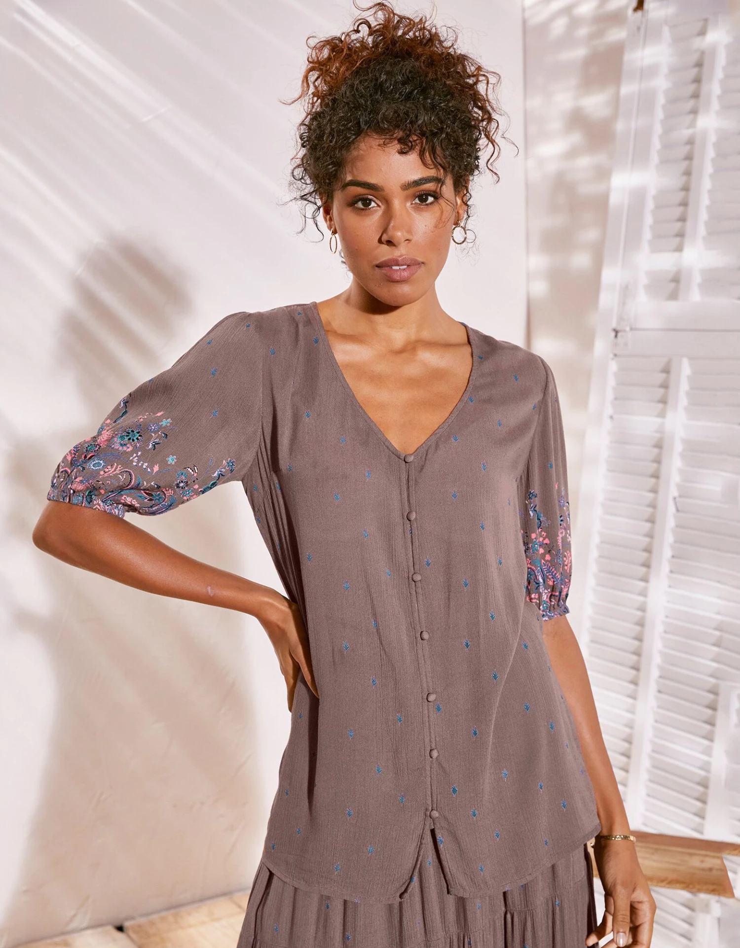 – Manches blousantes élastiquées, bas imprimé esprit cachemire