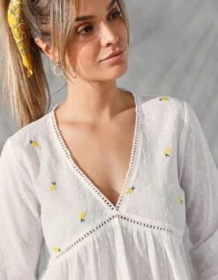 – Manches 7/8 élastiquées pour un bel effet bouffant actuel