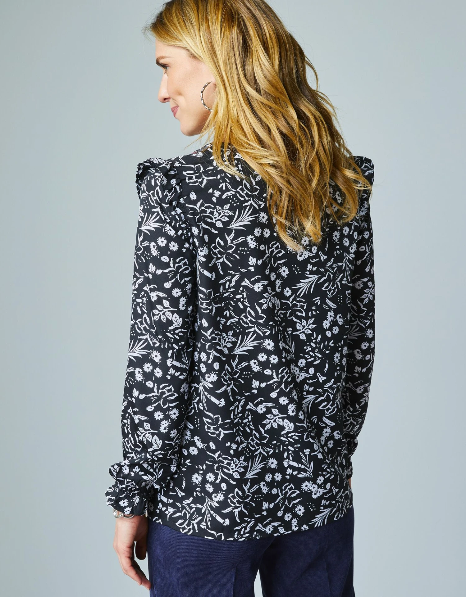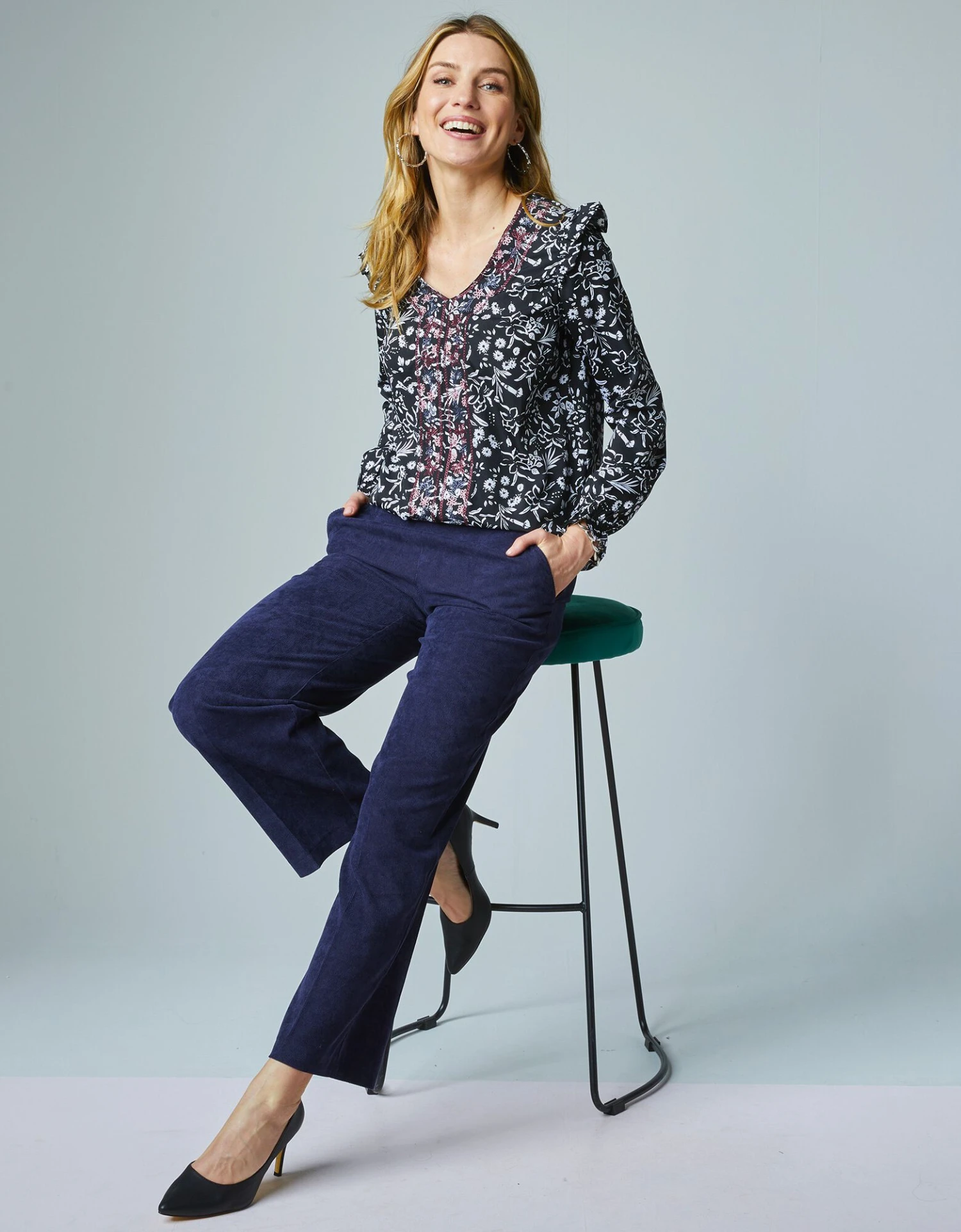 – Broderie florale contrastante le long du col et jusqu’en bas