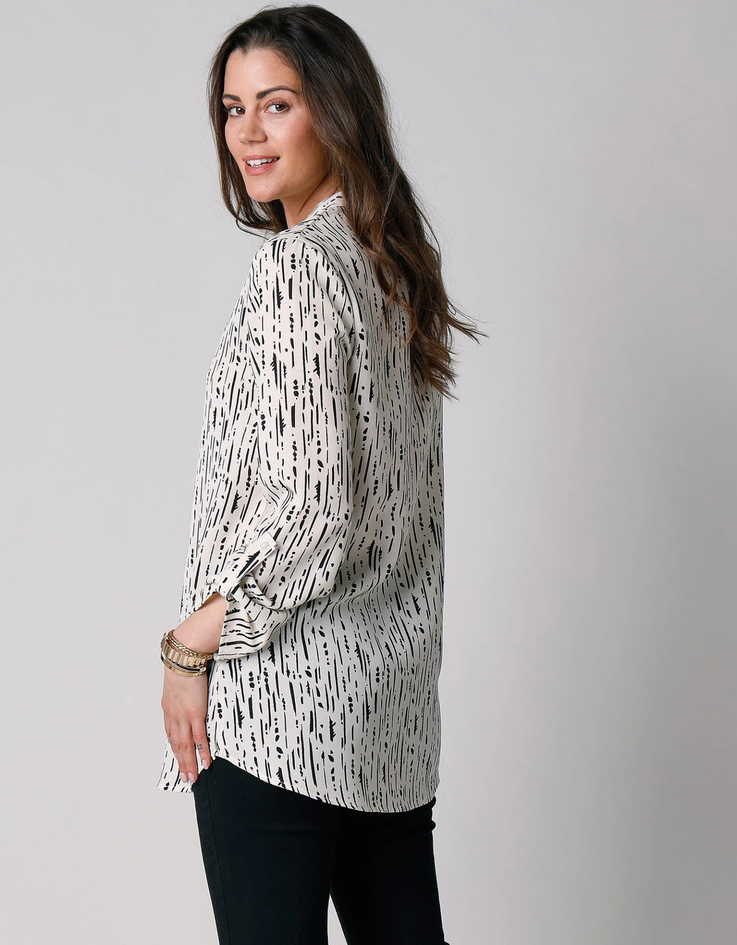 – Manches longues retroussables en 3/4 par patte de boutonnage