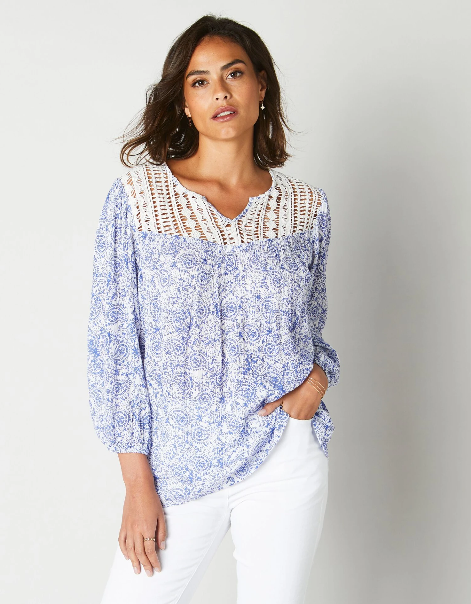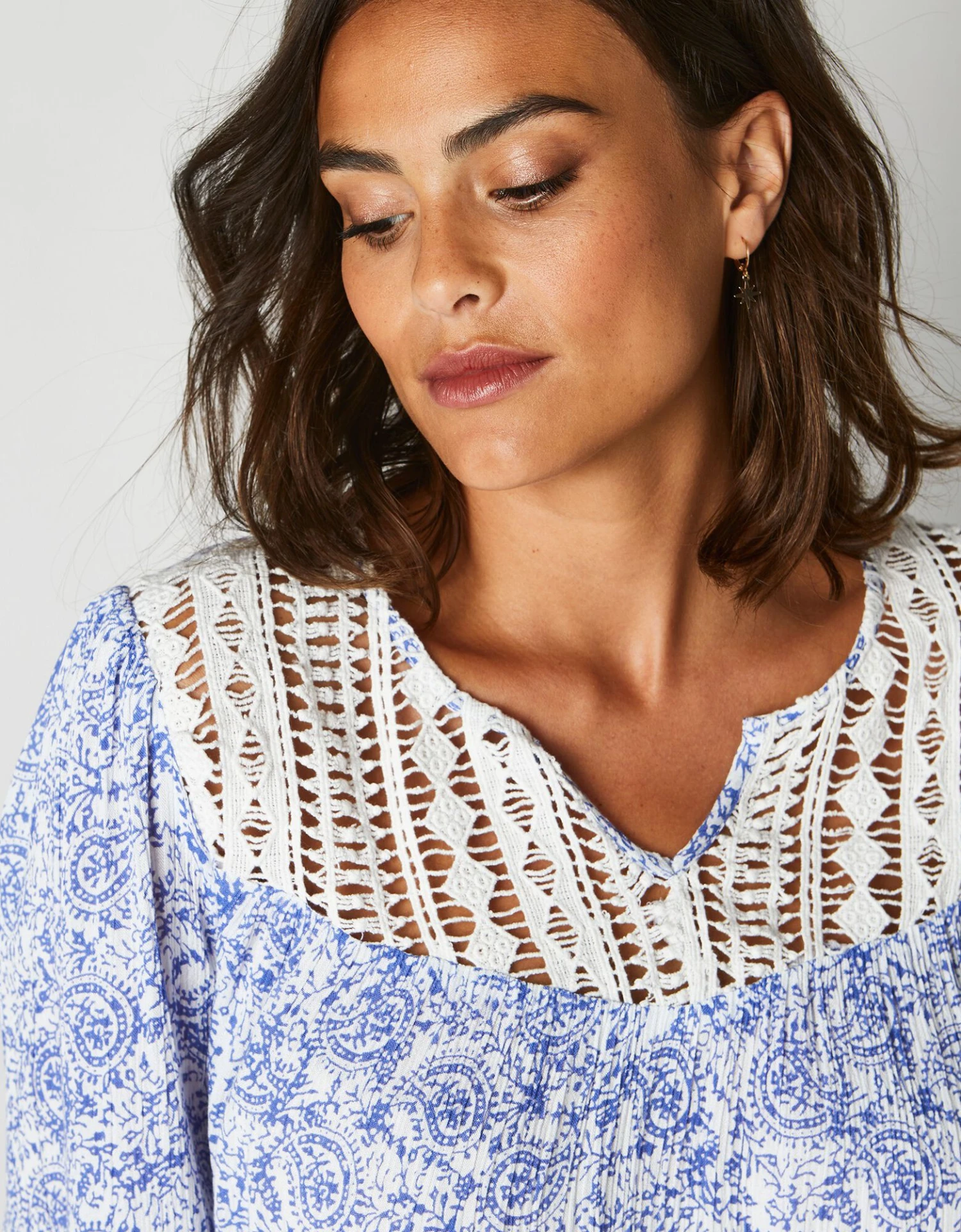 – Empiècement macramé ajouré devant