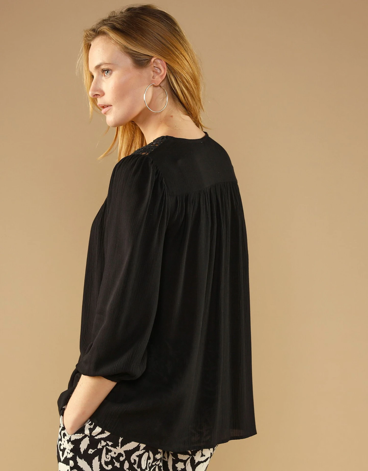 – Manches 3/4 élastiquées pour un bel effet blousant
