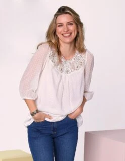 – Manches 3/4 amples, élastiquées à la base