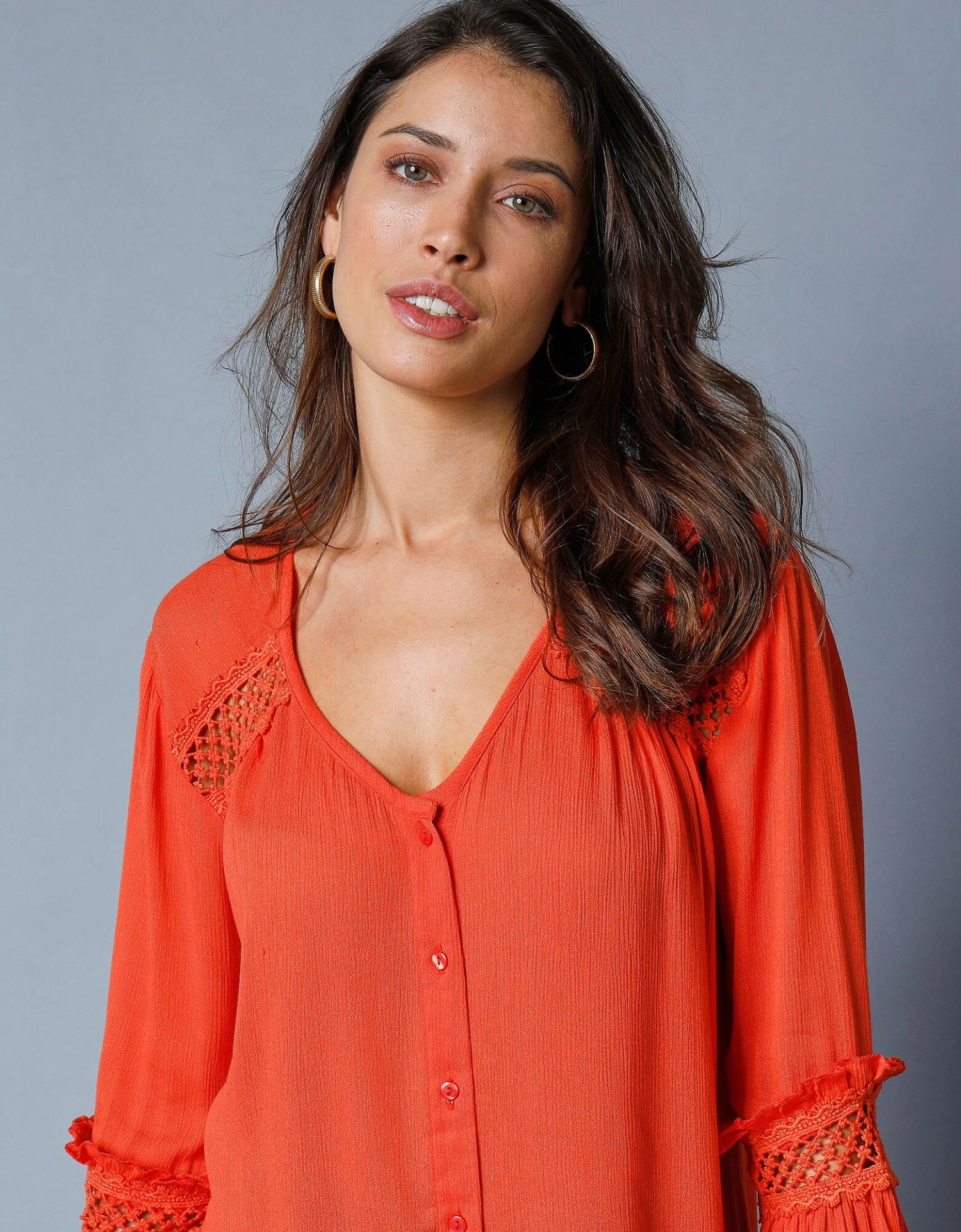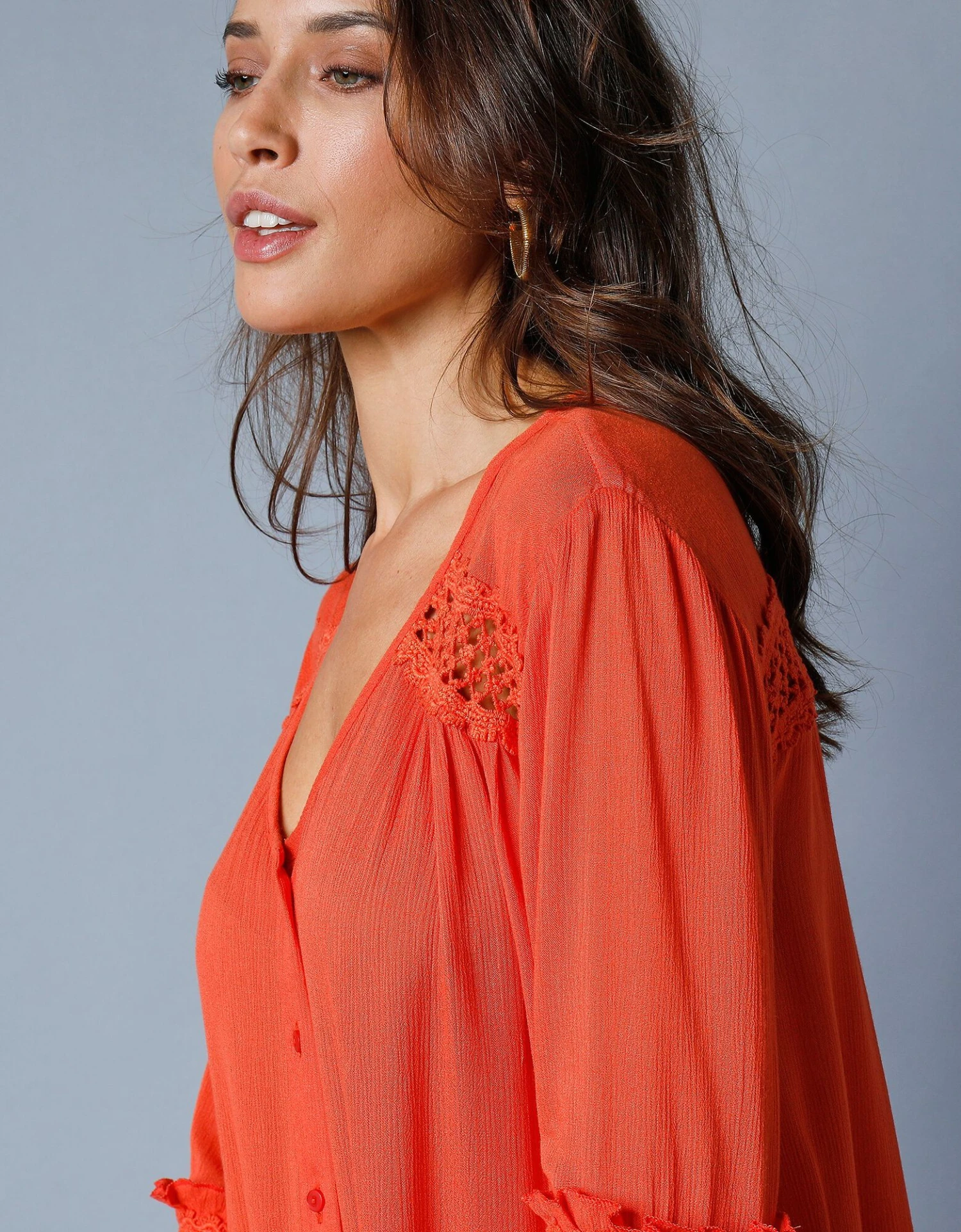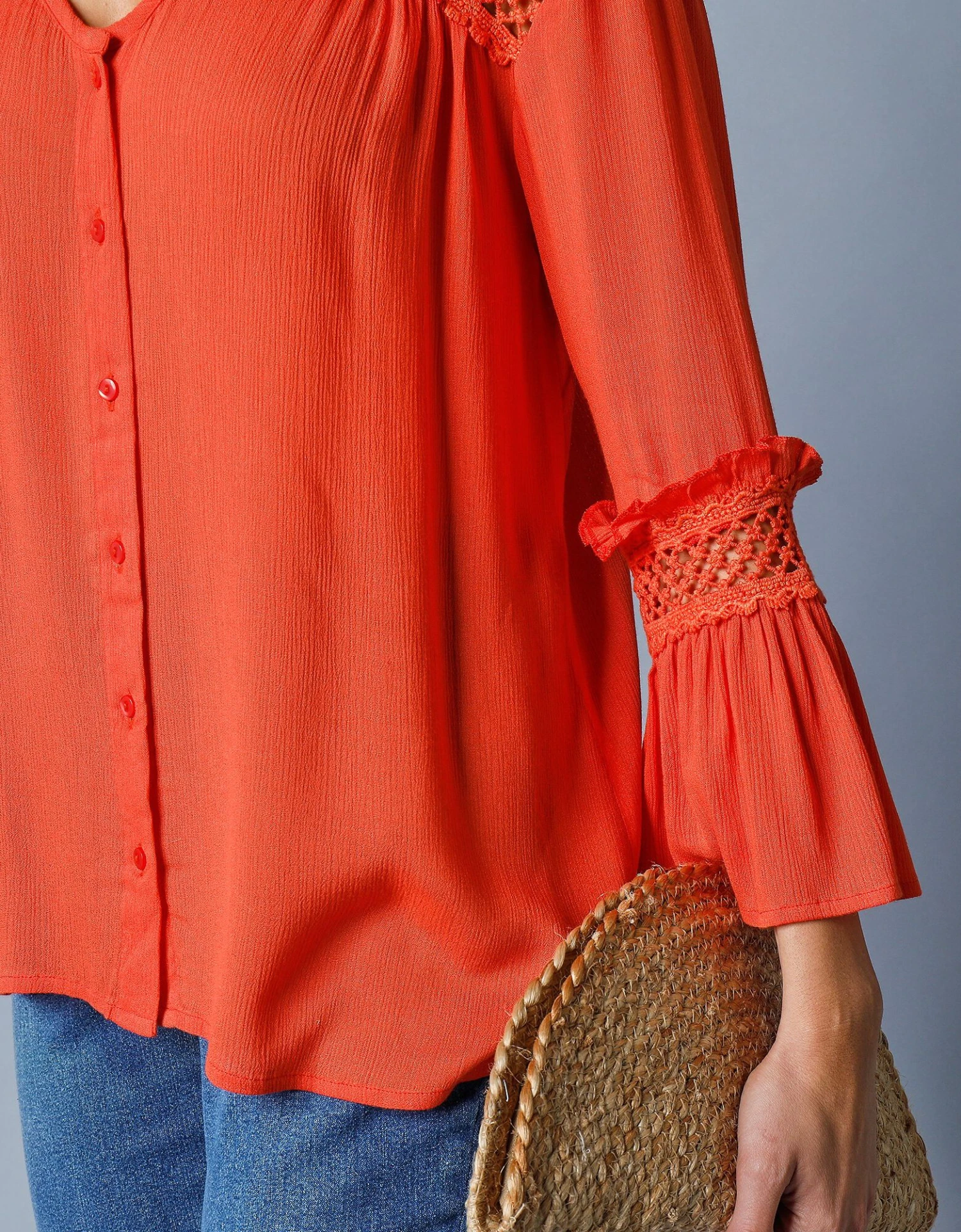 – Empiècement en macramé ajouré sur les épaules