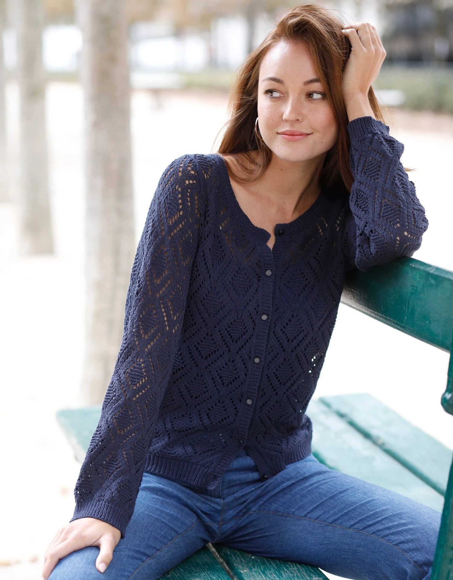 – Point fantaisie ajouré 70% coton, 30% polyester