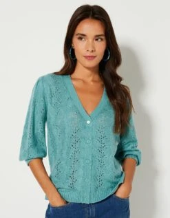 – Entièrement boutonné, boutons effet nacré ton sur ton devant