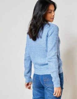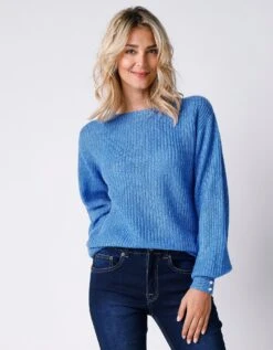 – Col bateau souligné par une bande simple en côtes + 3 boutons fantaisie