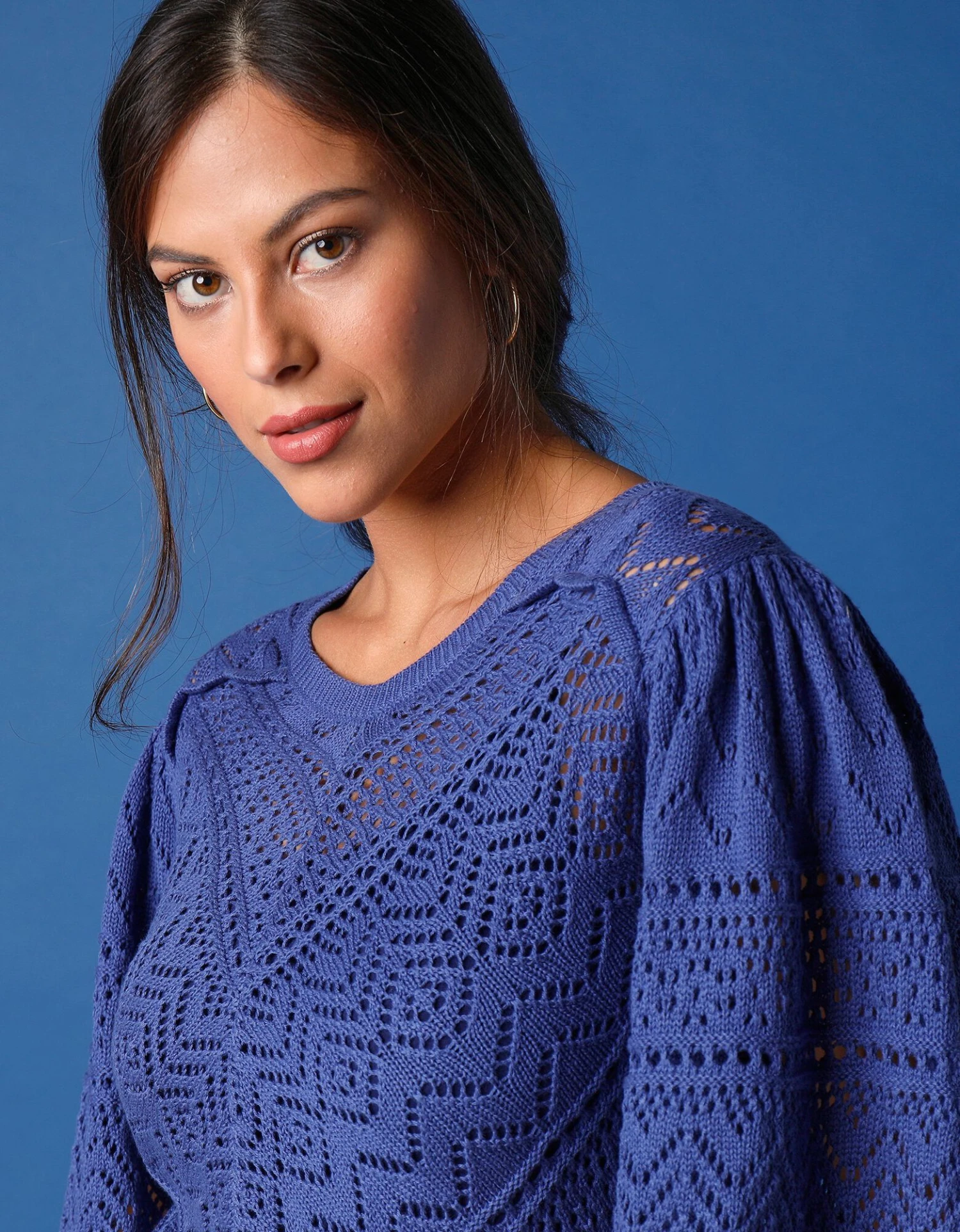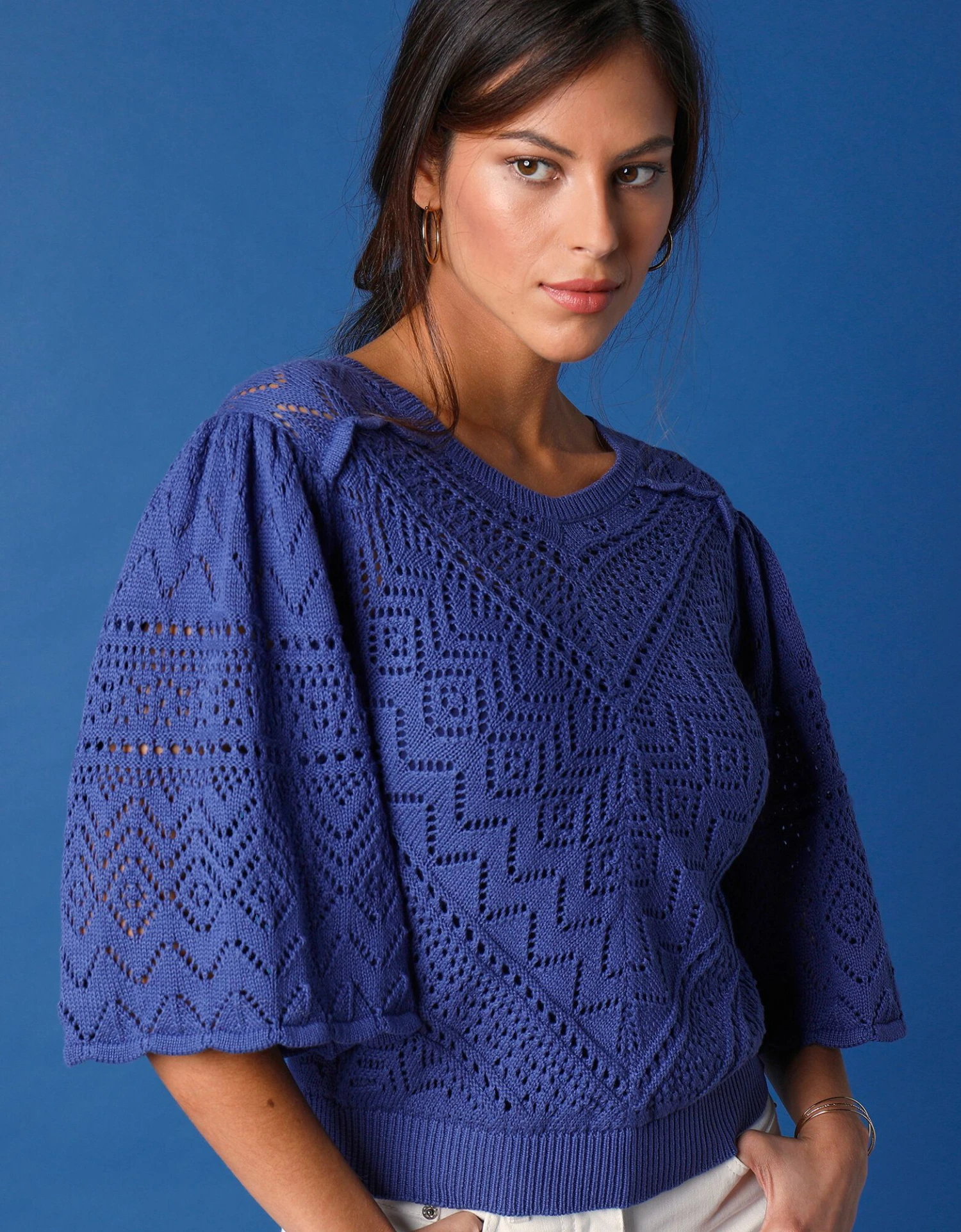 – Dos en jersey, devant et manches en maille fantaisie