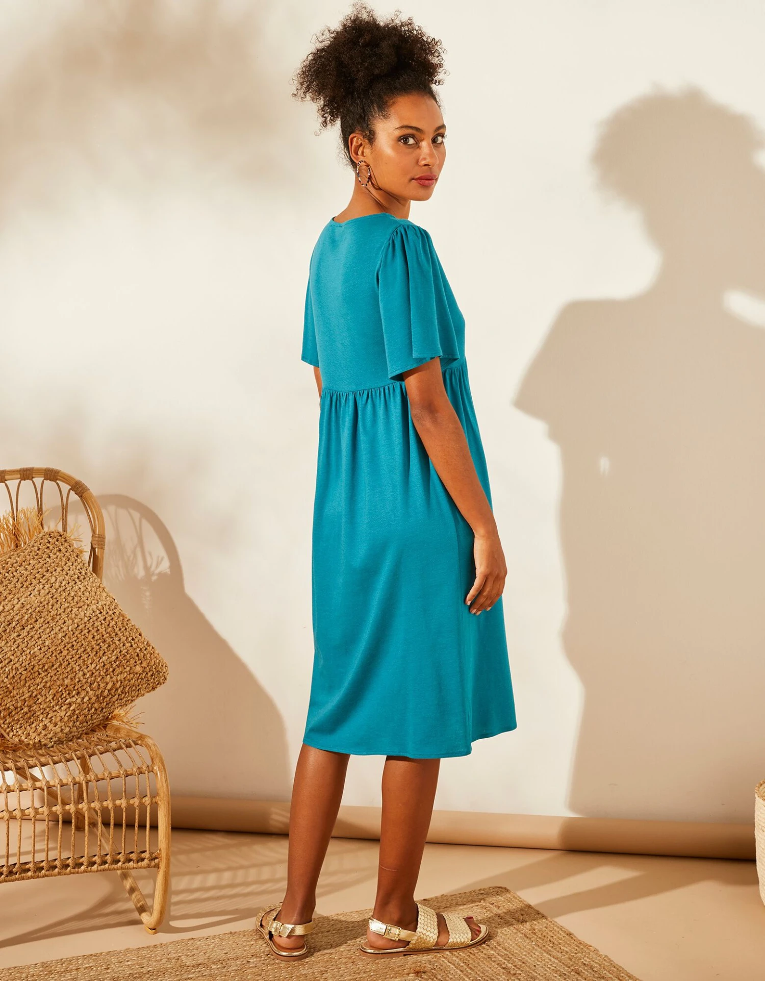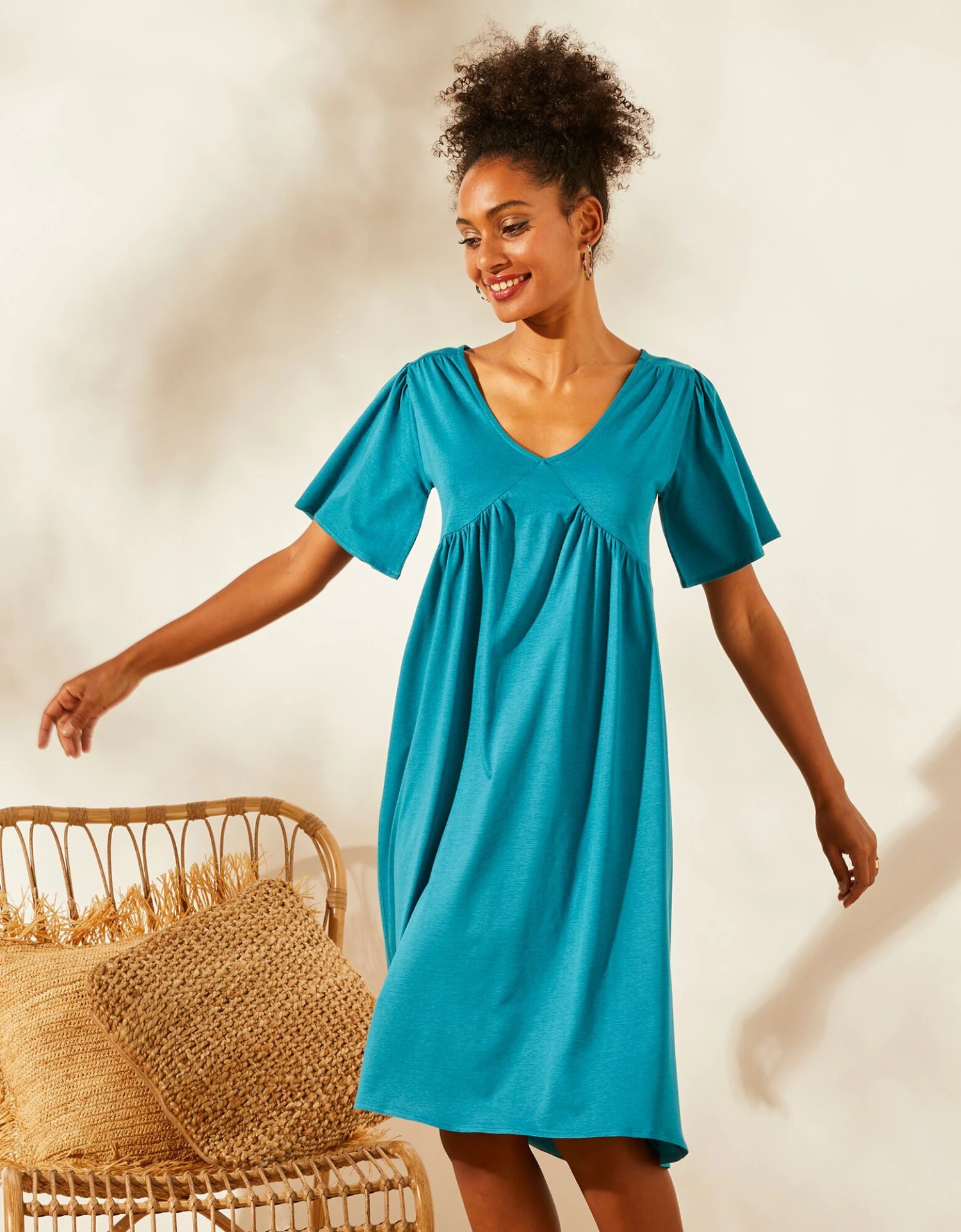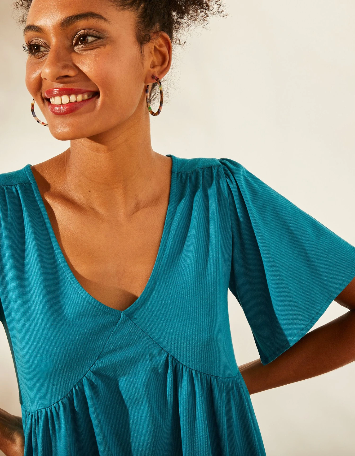 – Manches courtes papillon avec petites fronces en tête de manches