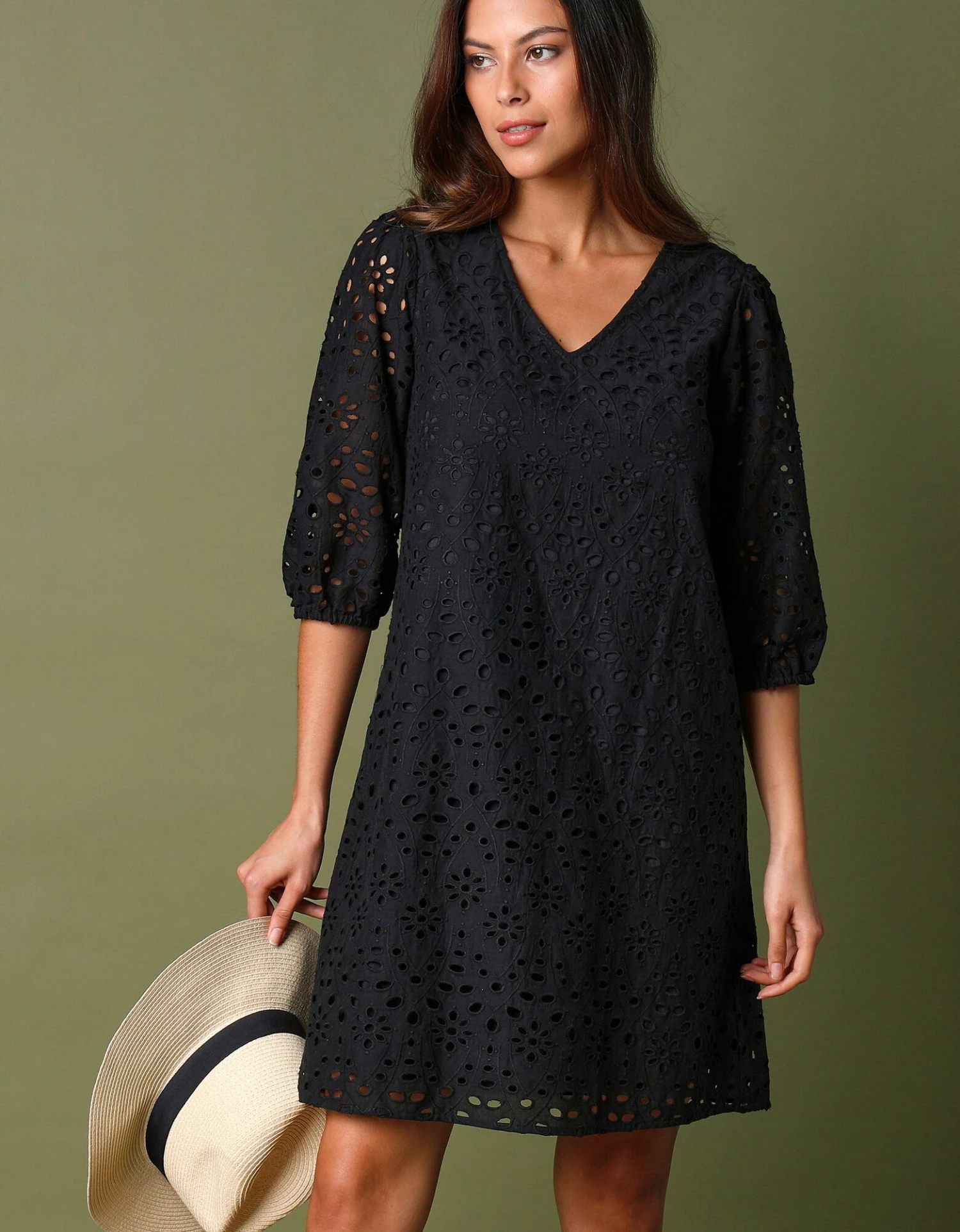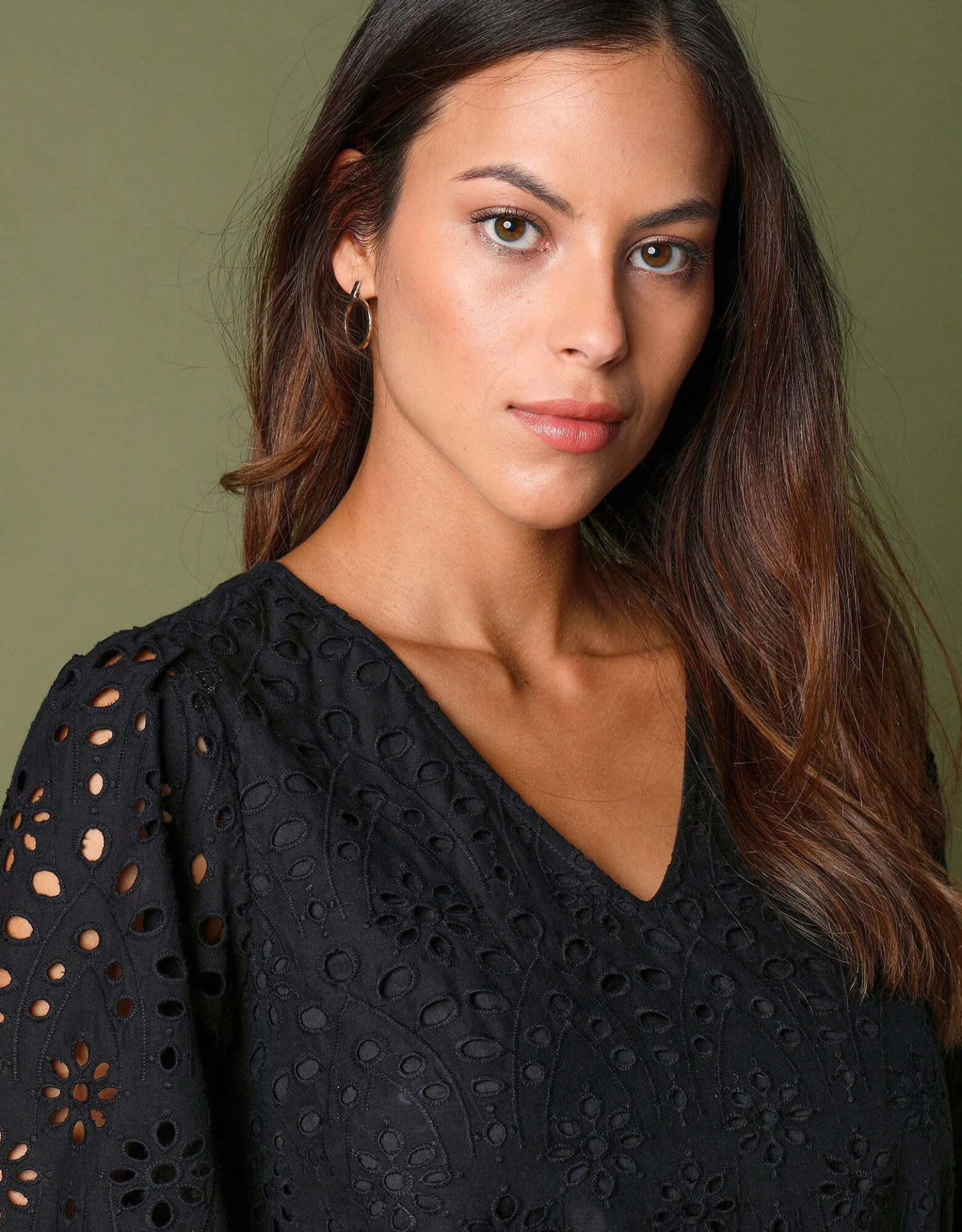 – Manches 3/4 resserrées aux coudes pour effet bouffant