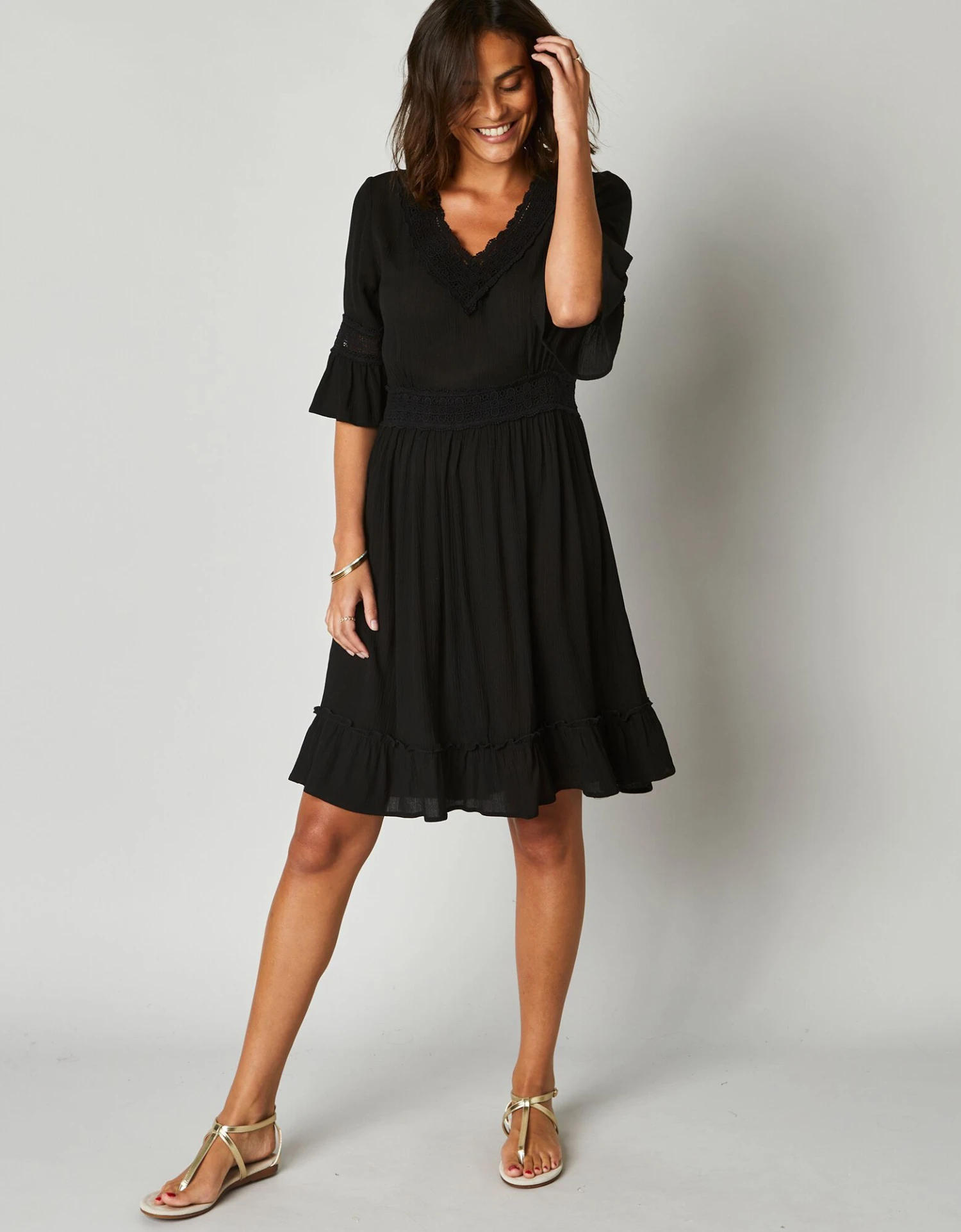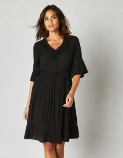 – Fronces sous la taille dessinant une ligne légèrement évasée