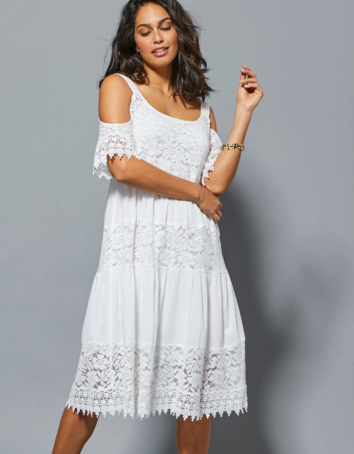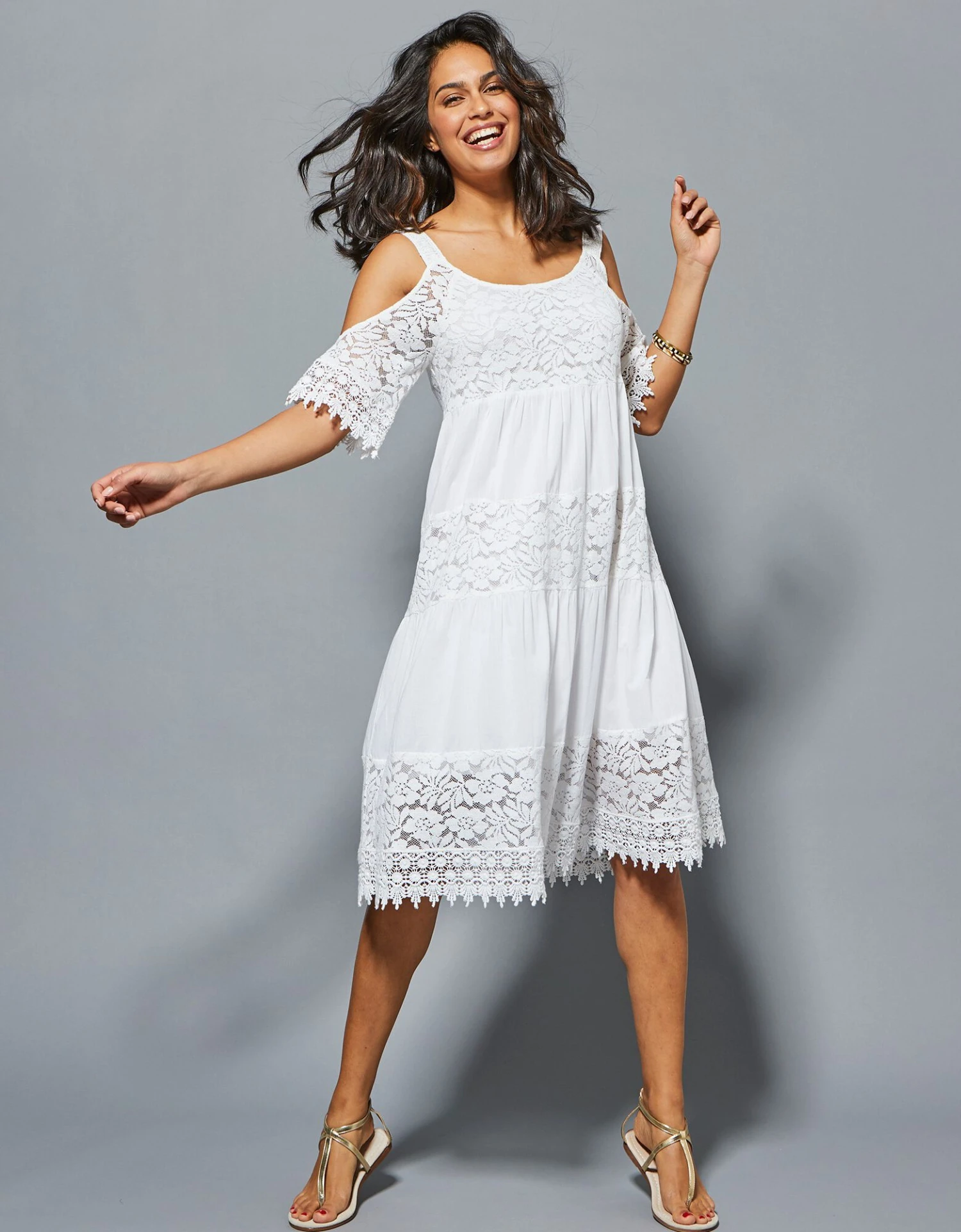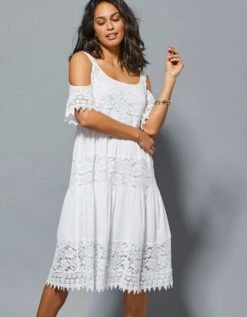 – Manches évasées avec ouverture épaules, finies par du macramé