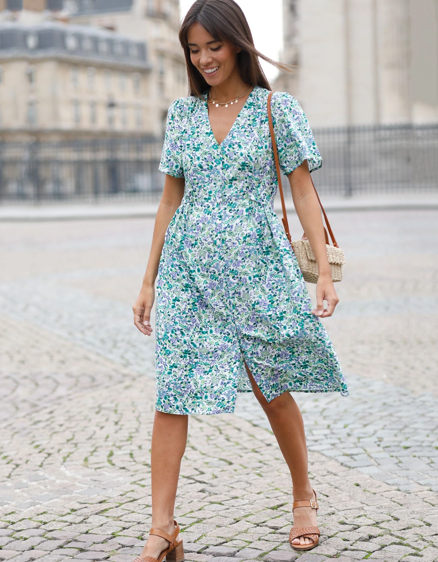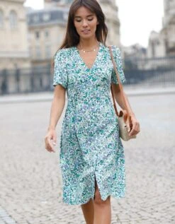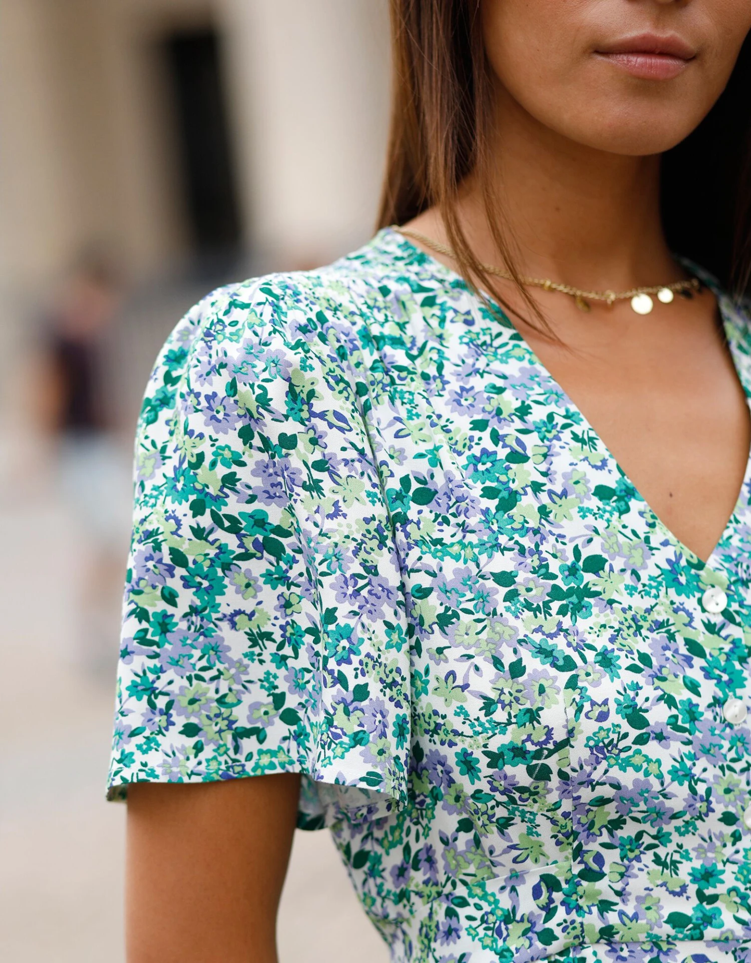 – Manches courtes papillon, amples et modernes, qui cachent le haut des bras