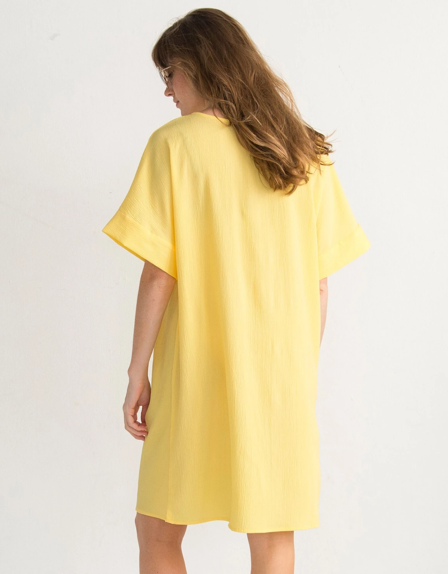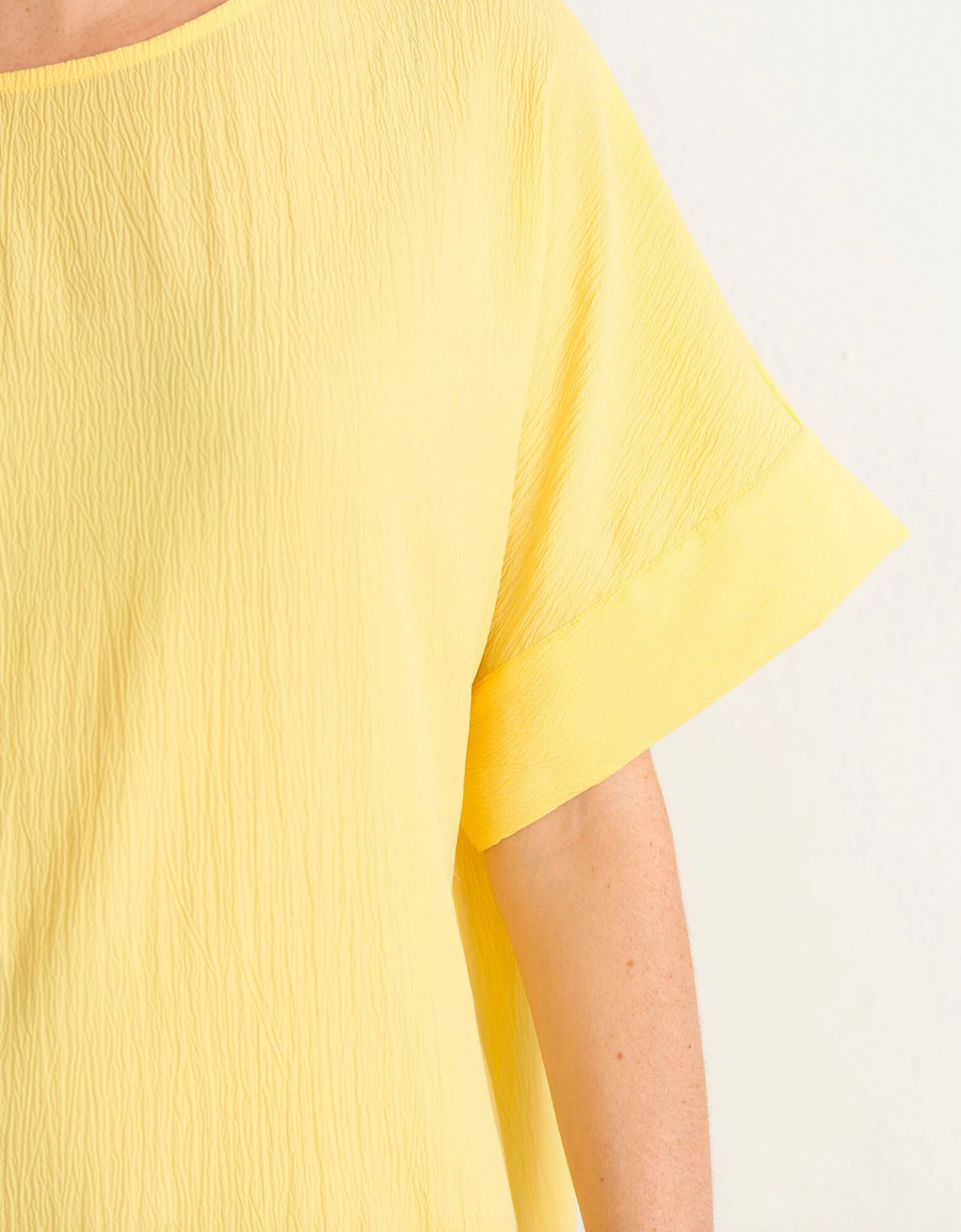 – Larges manches courtes effet « chauve-souris », finies par un revers fantaisie