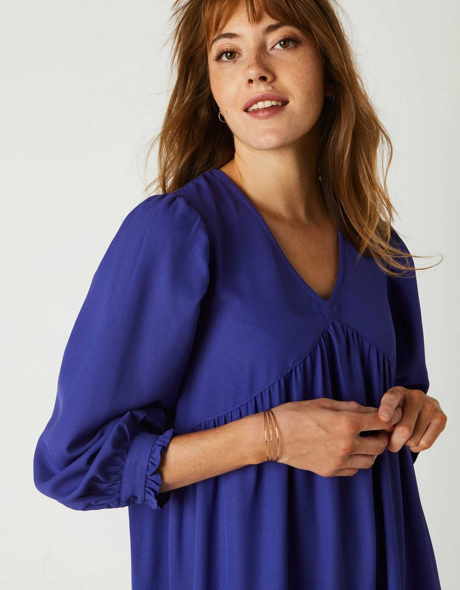 – Découpe sous poitrine soulignée de fronces qui dessinent une belle ampleur