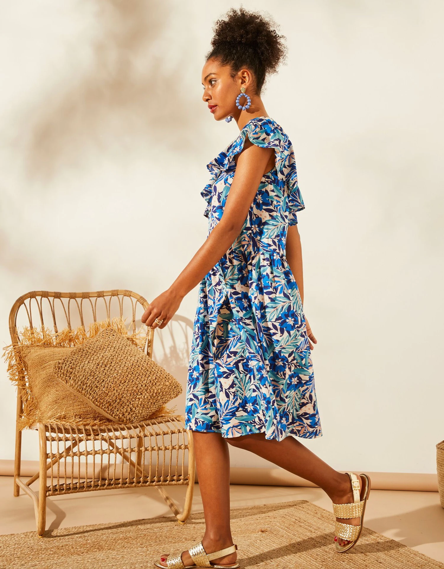 – Col volanté élastiqué devant et dos laissant apparaitre une épaule
