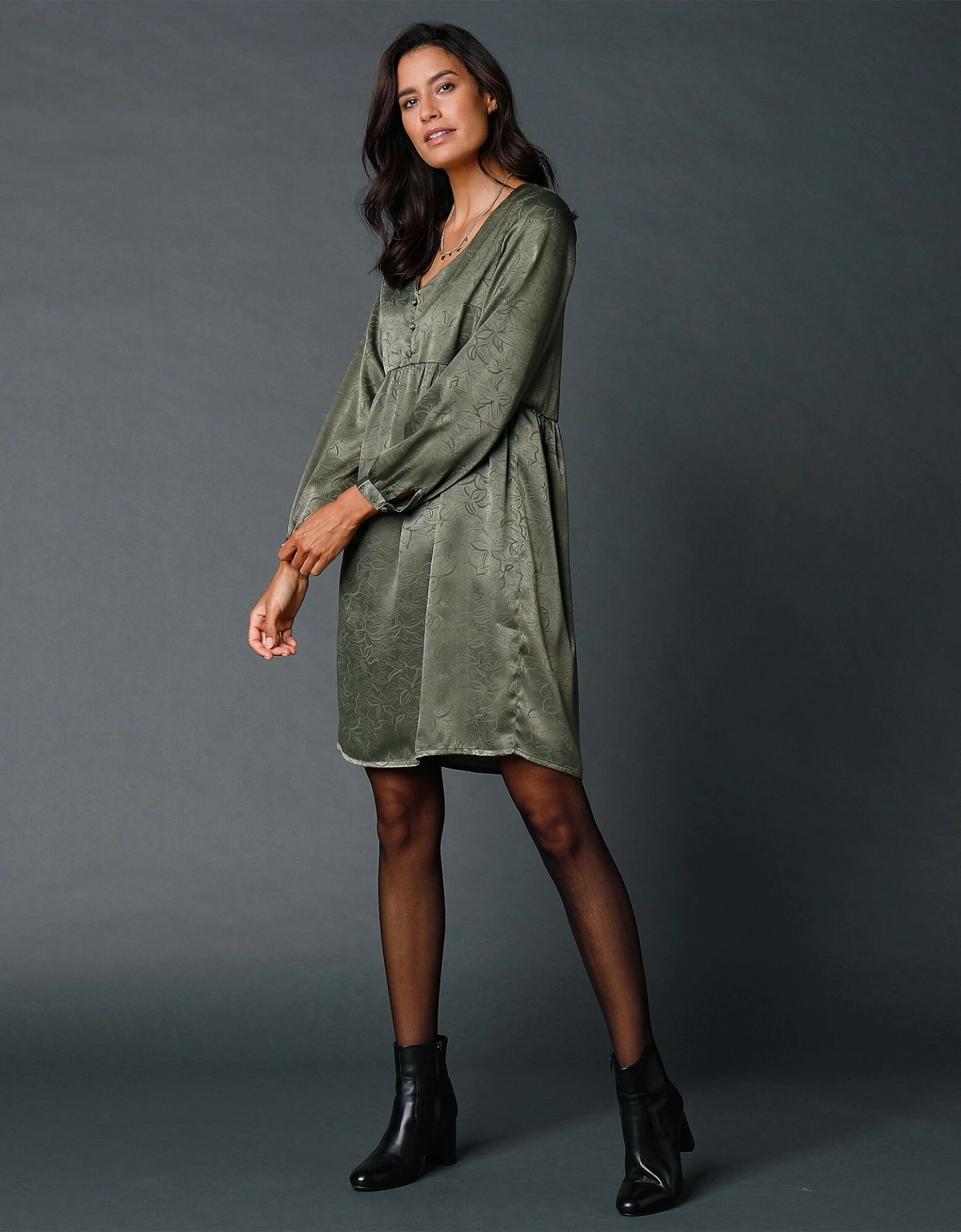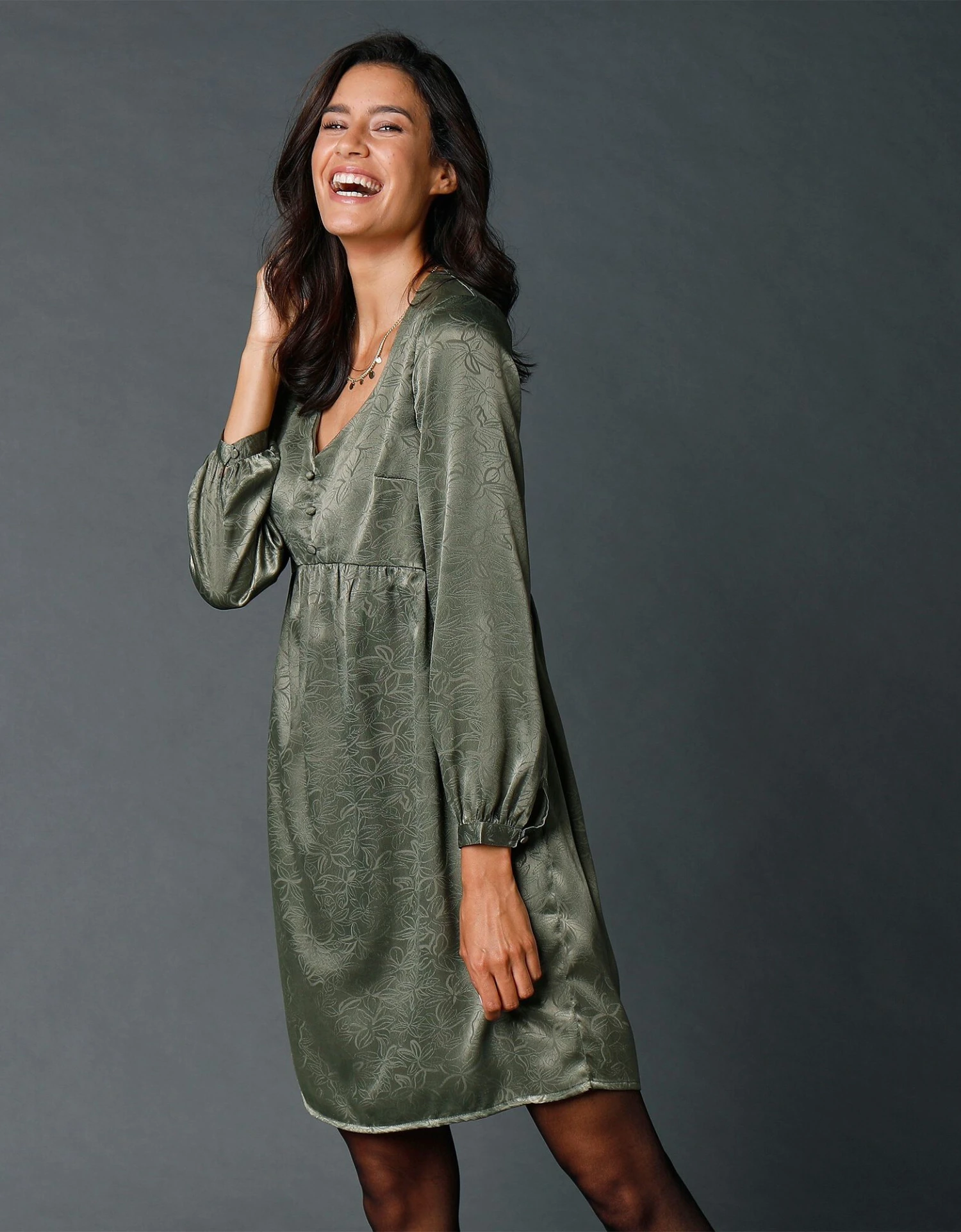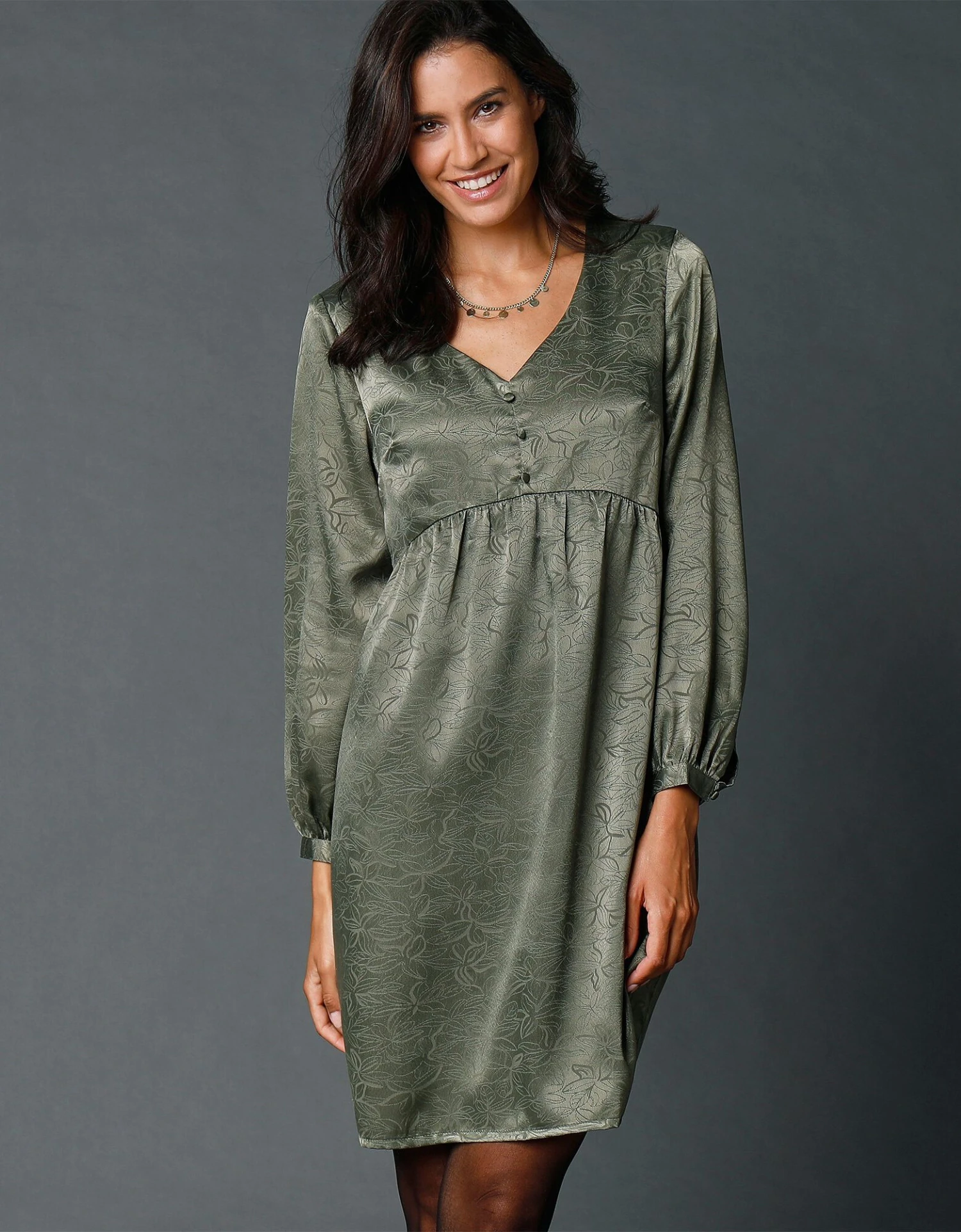 – Manches longues avec fine épaulette recouverte (pas de fronces en tête de manches)