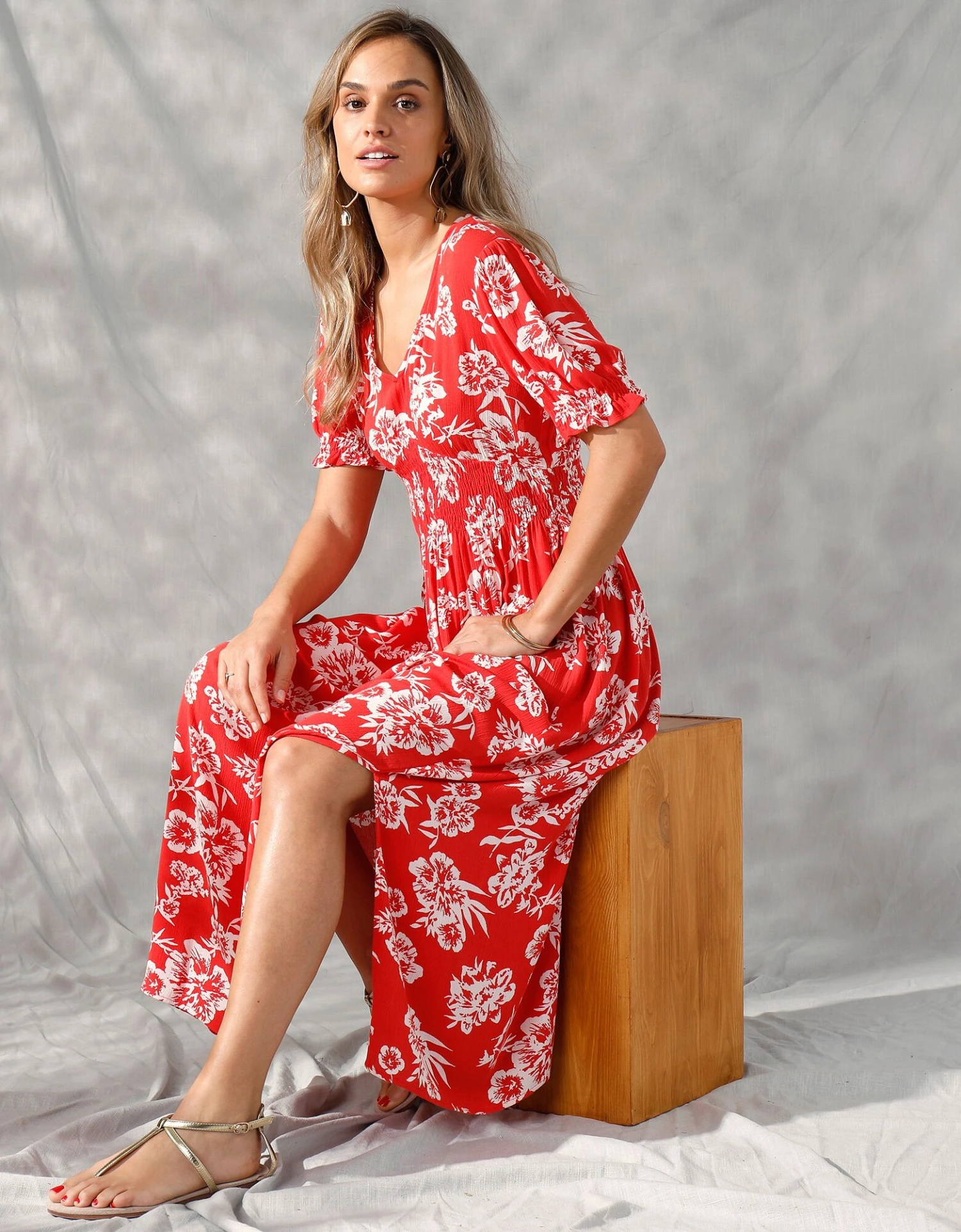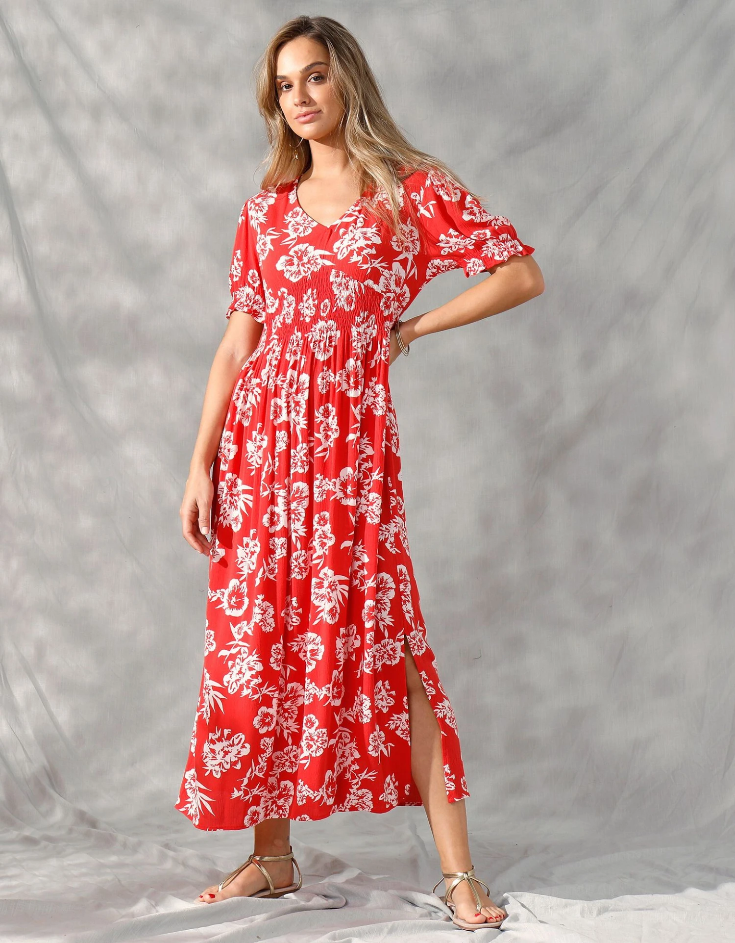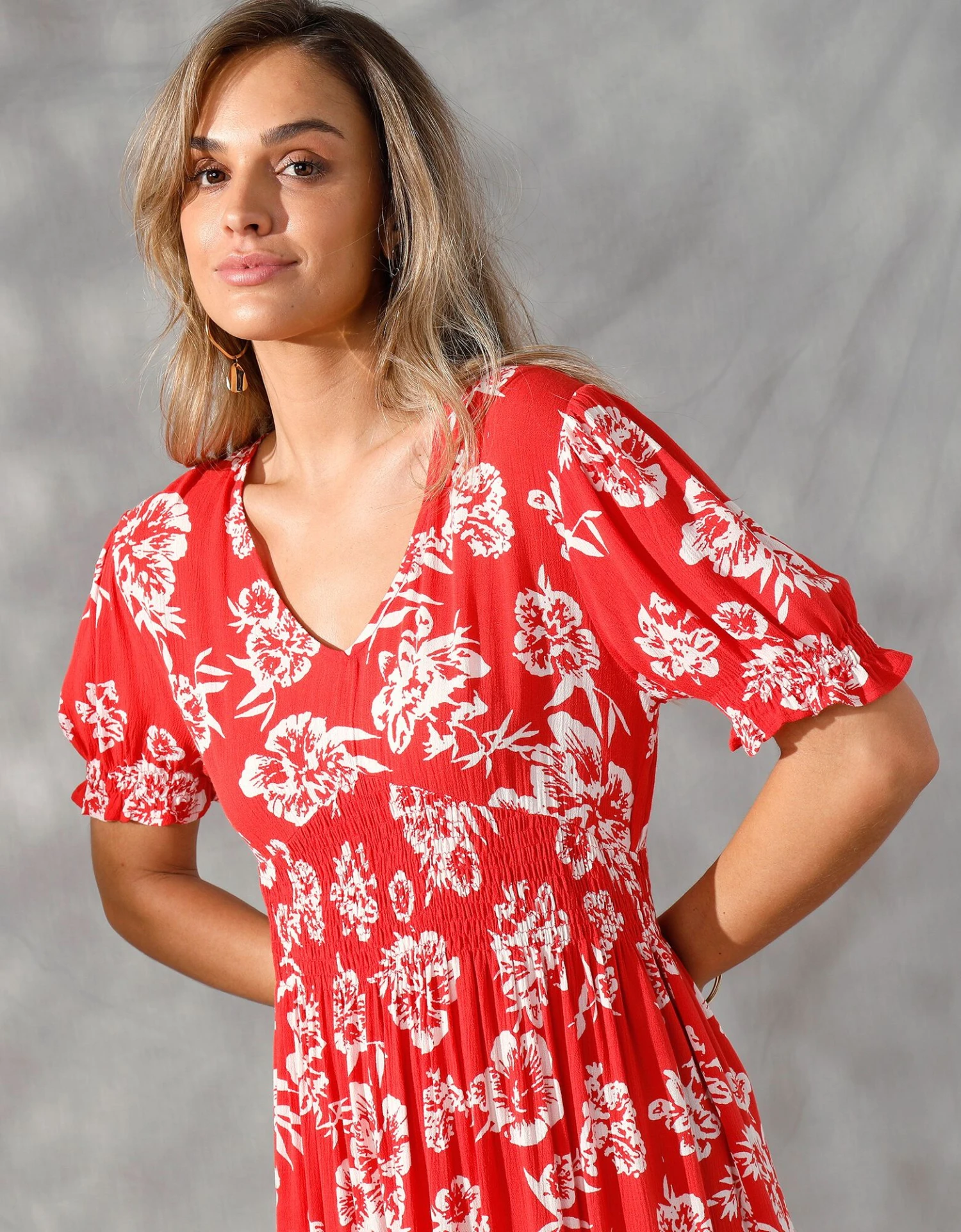 – Découpe smockée et froncée sous la poitrine qui marque la taille et apporte du blousant sur le haut du corps