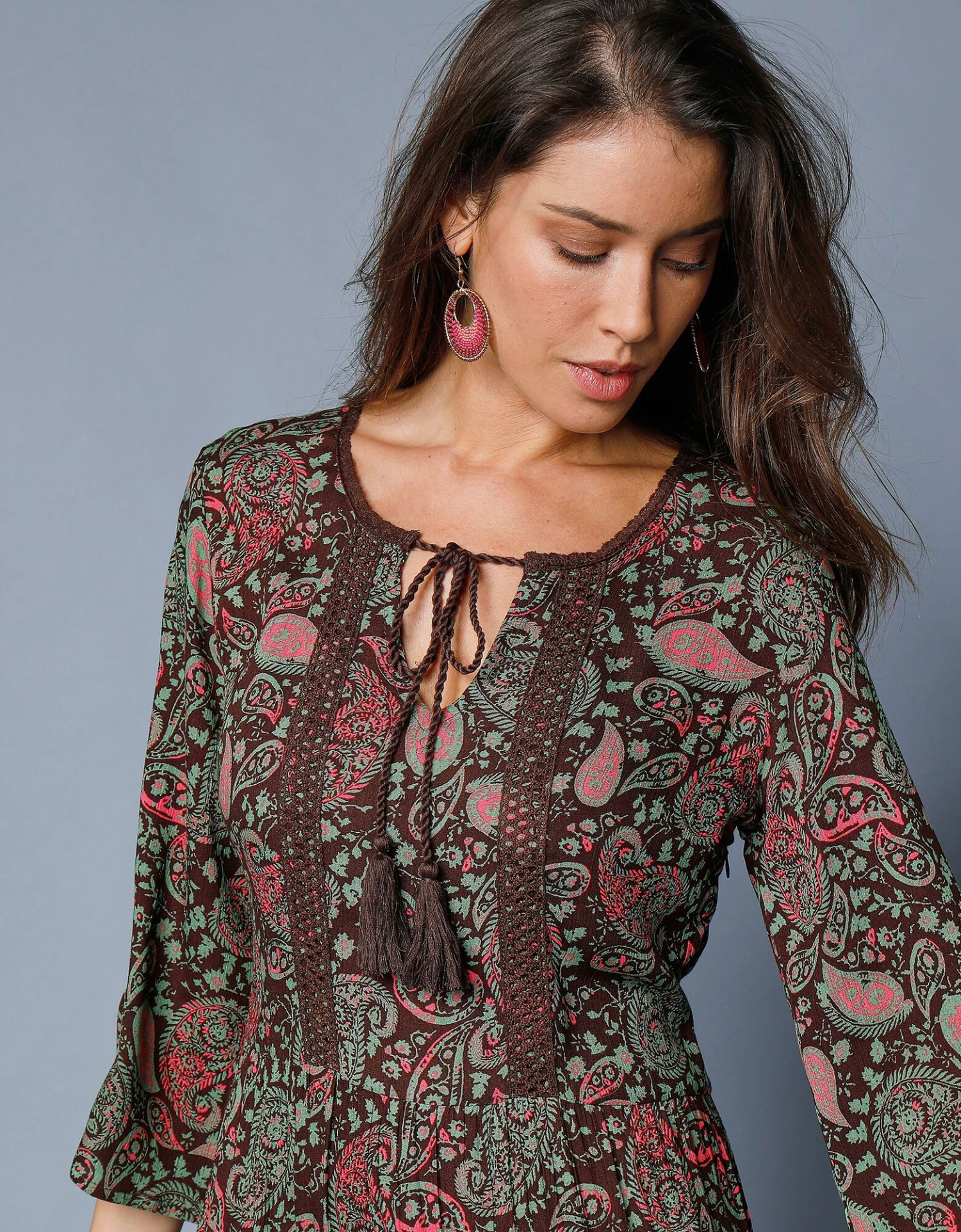 – 3 volants sous la découpe taille dont 1 souligné de macramé