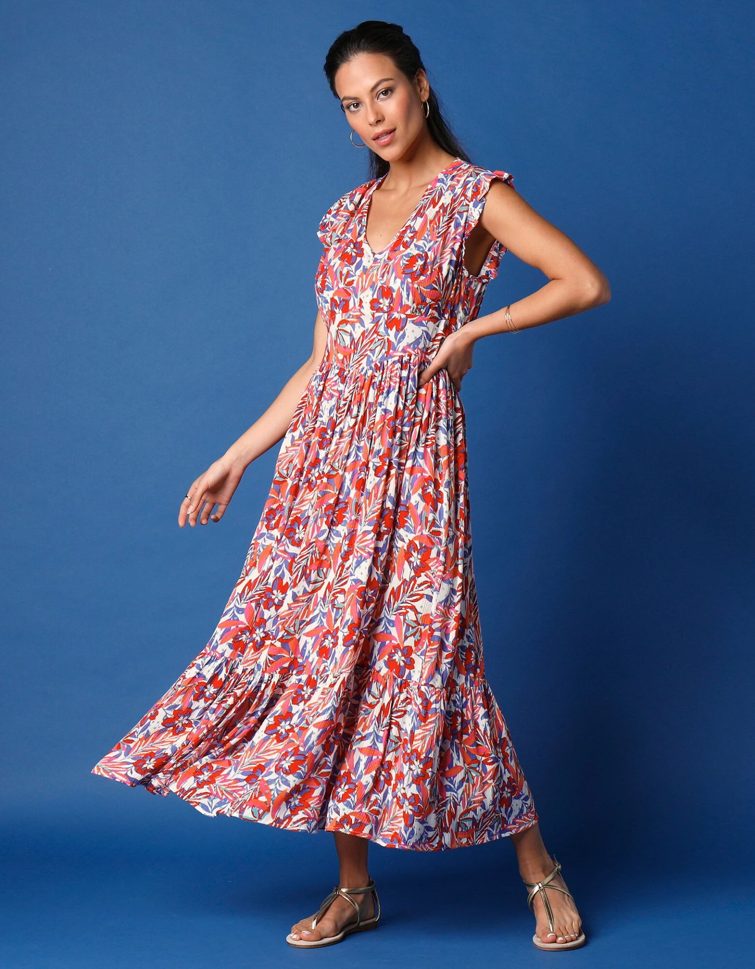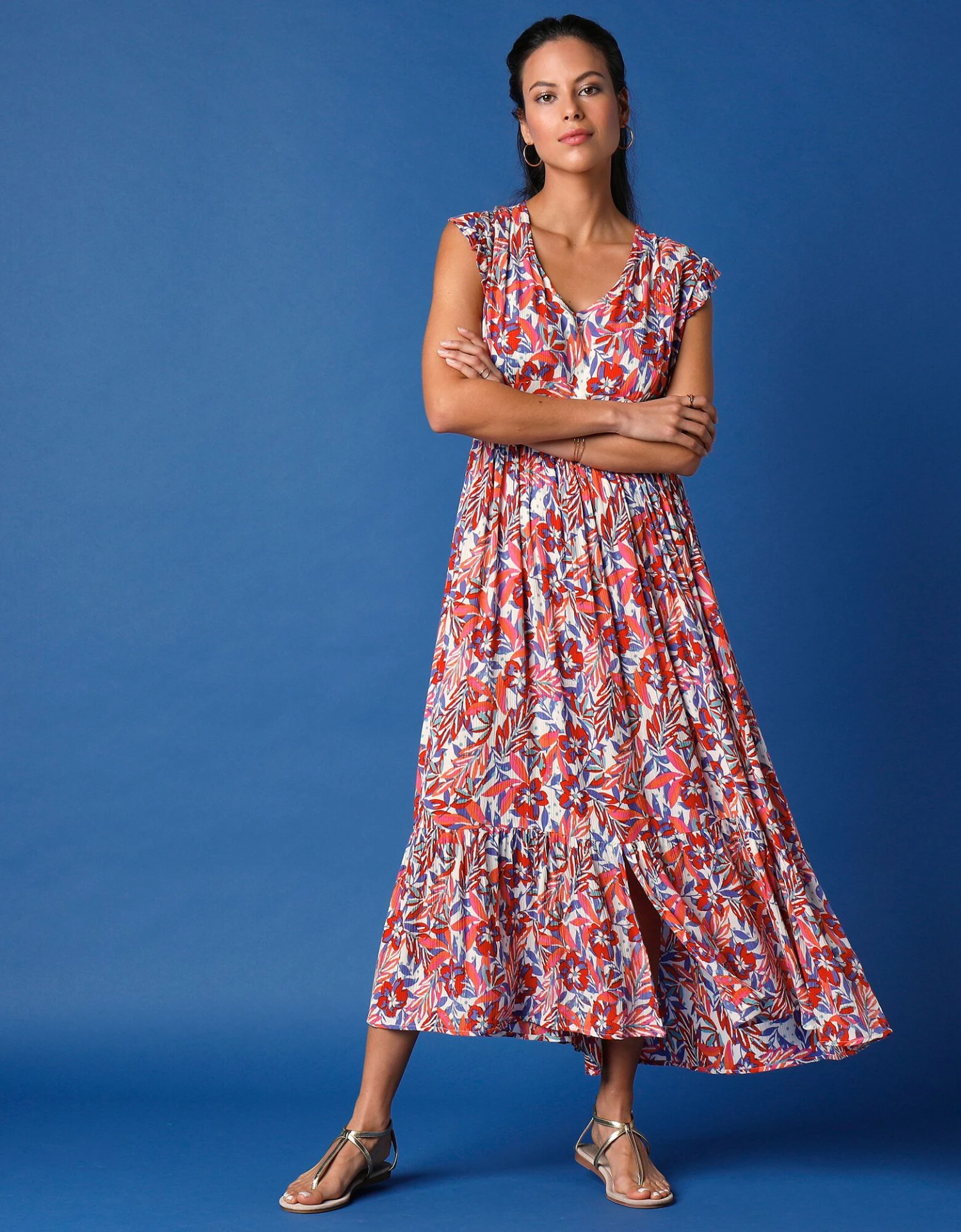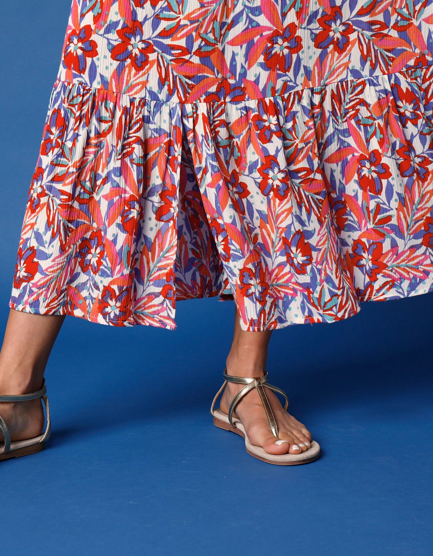 – Base évasée finie par grand volant fendu milieu devant.