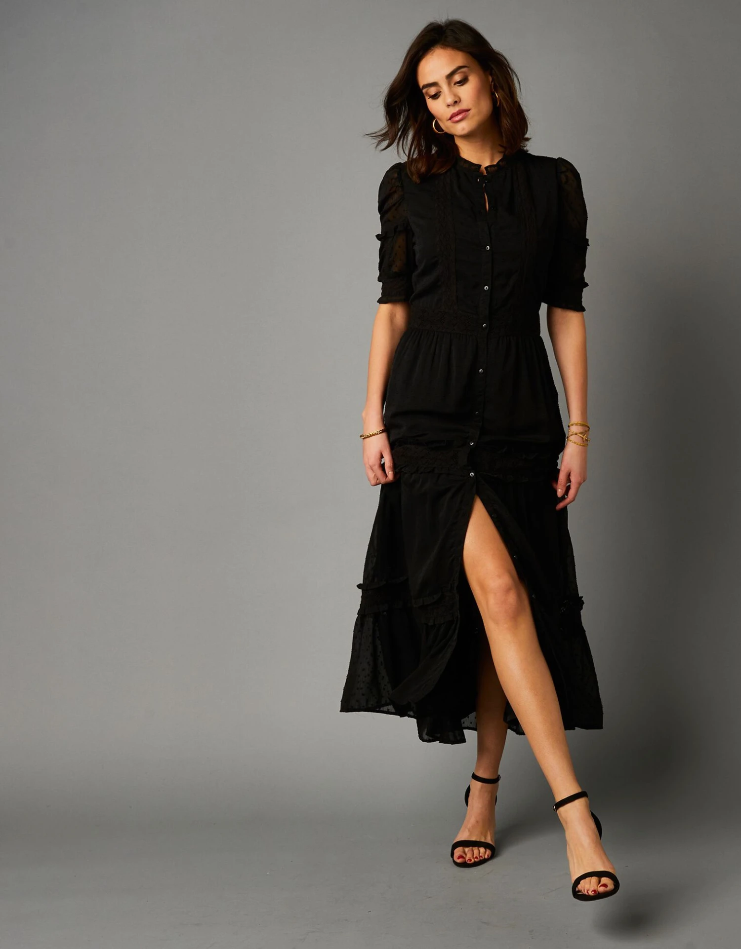 – Entièrement boutonnée devant pour allonger la ligne et faciliter l’enfilage