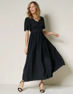 – Découpe arrondie froncée à la taille devant pour composer un joli volume en base et sur poitrine