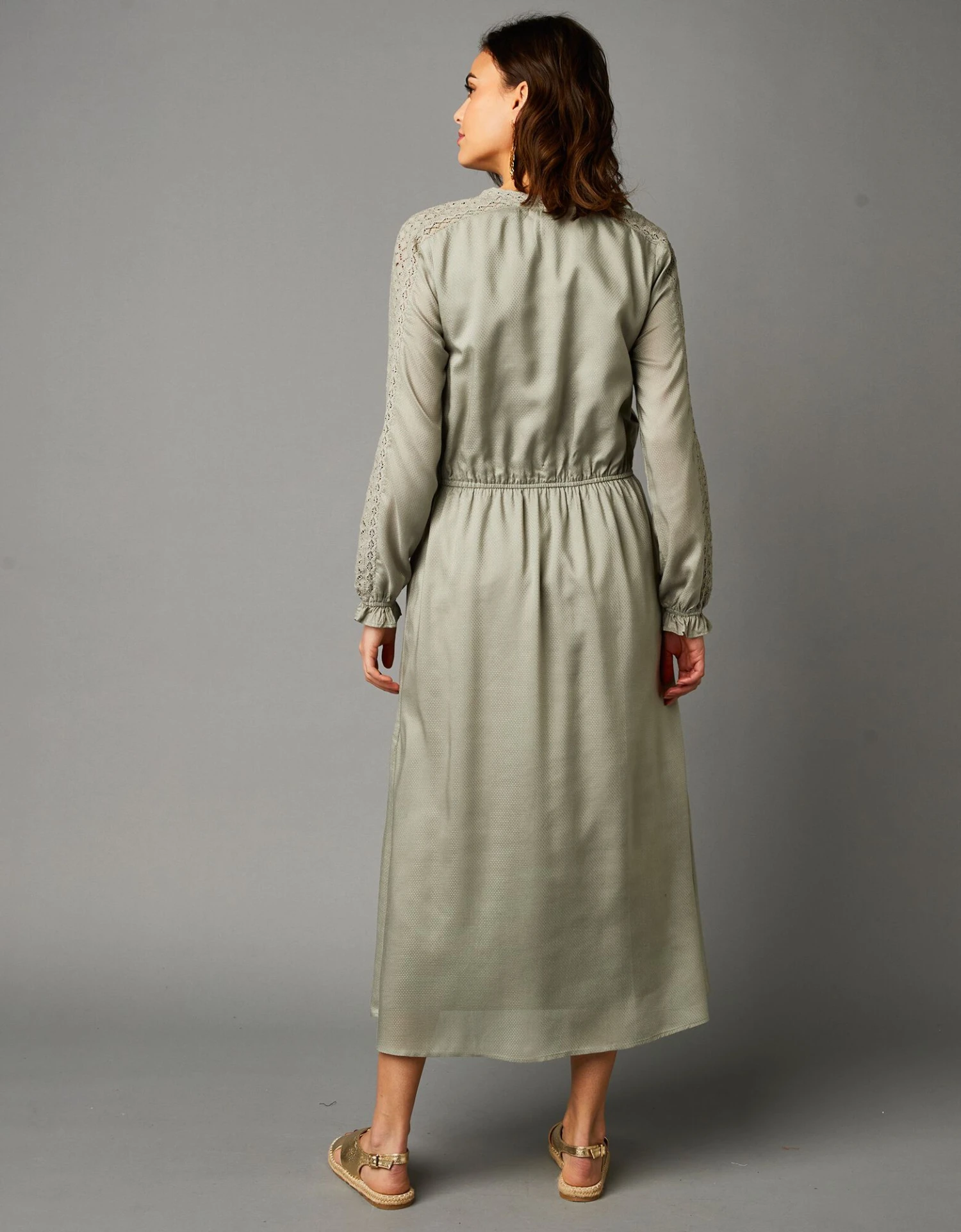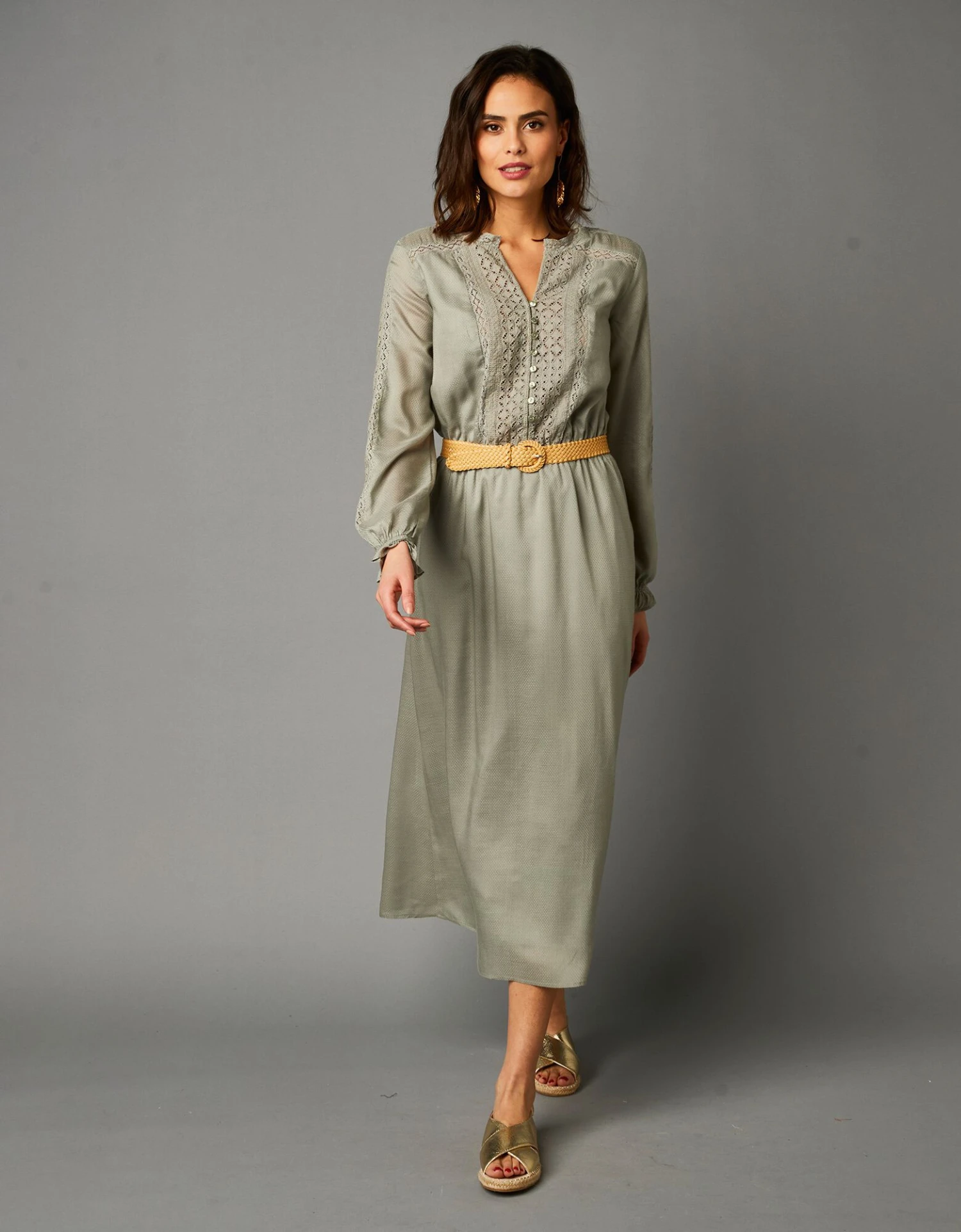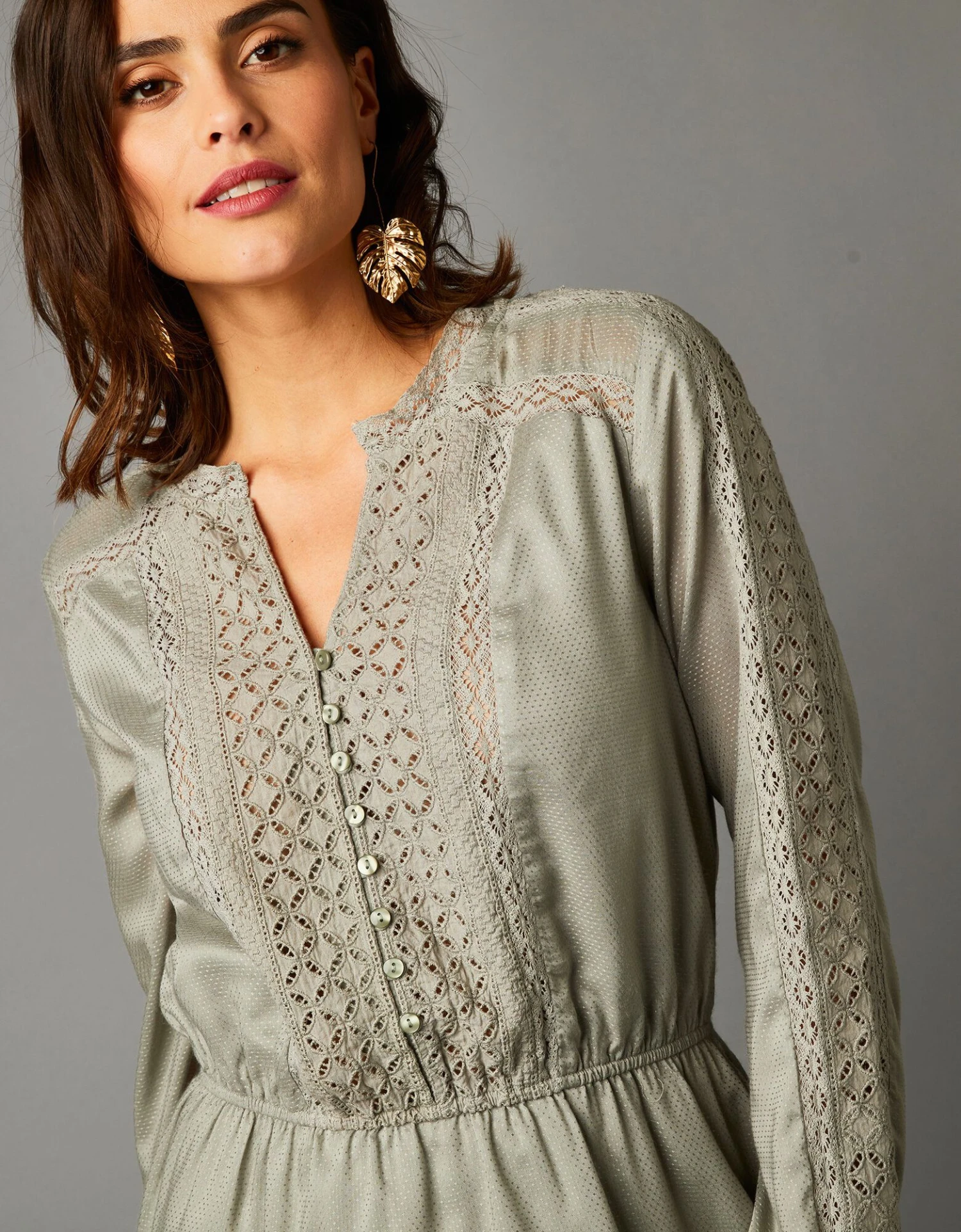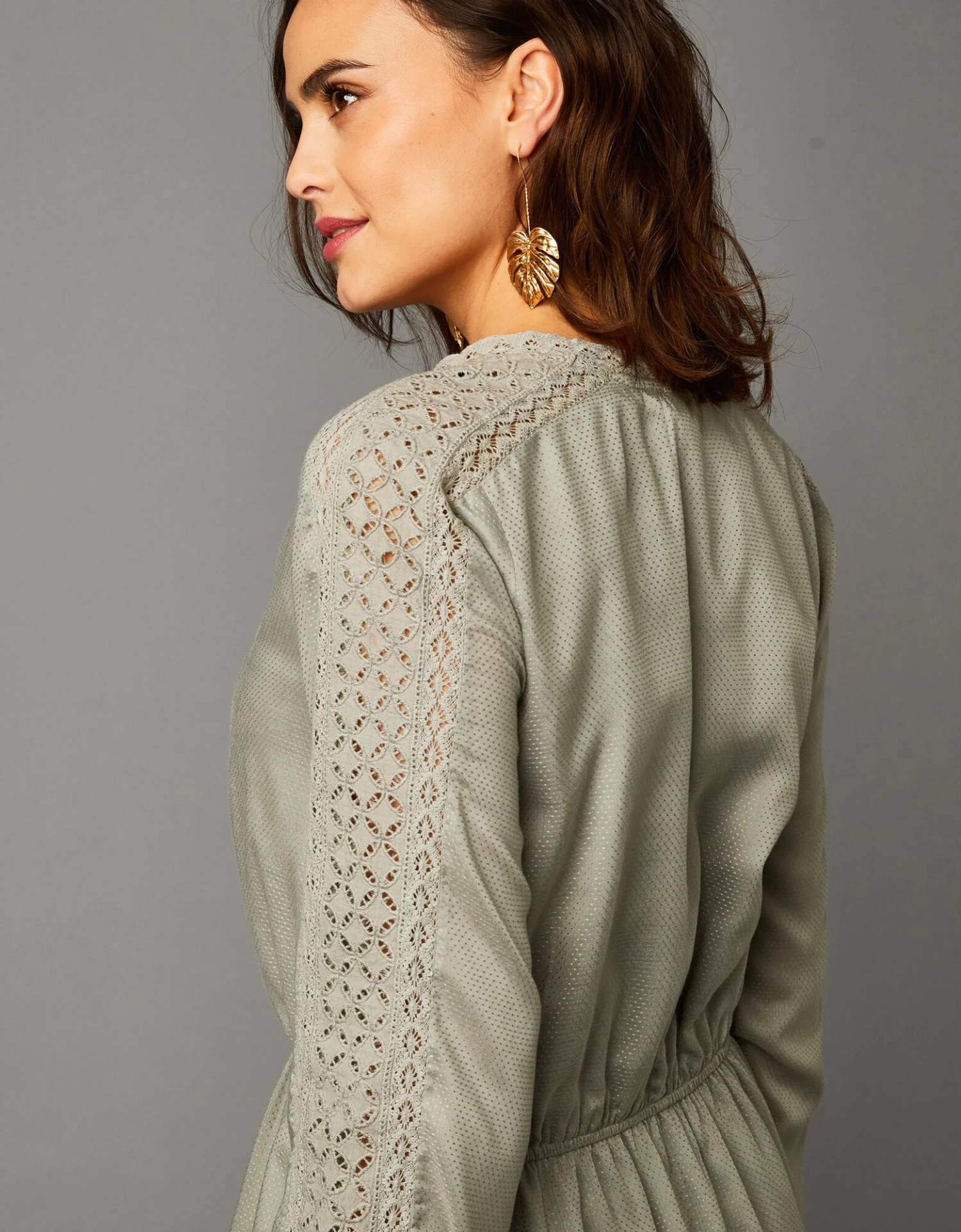 – Bande de macramé, jour échelle et broderie anglaise sur les manches et les épaules