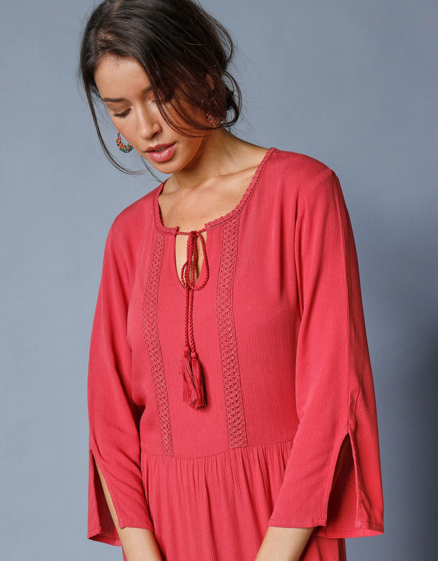 – Manches 3/4 évasées terminées par une fente