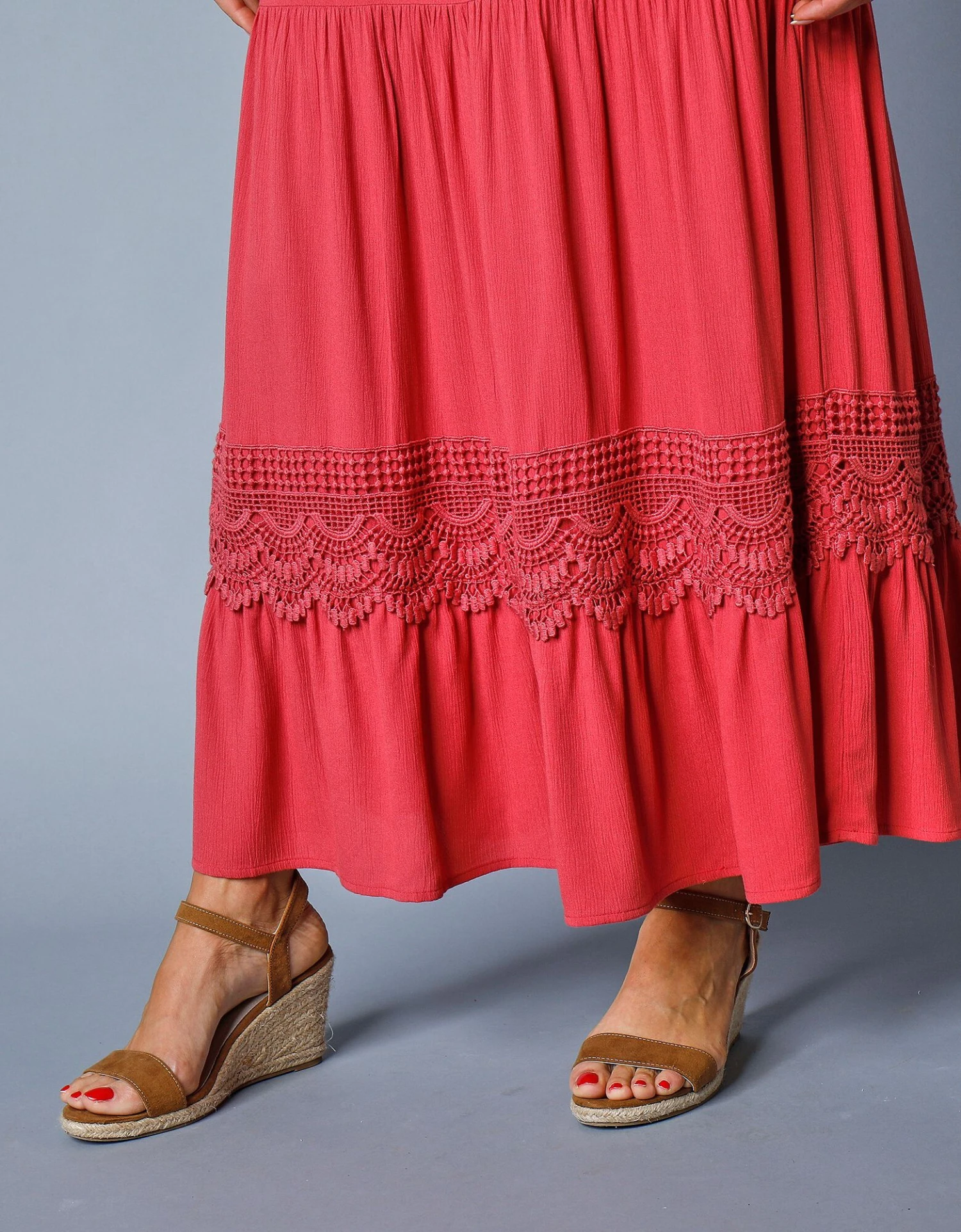 – 3 volants sous la découpe taille dont 1 souligné de macramé
