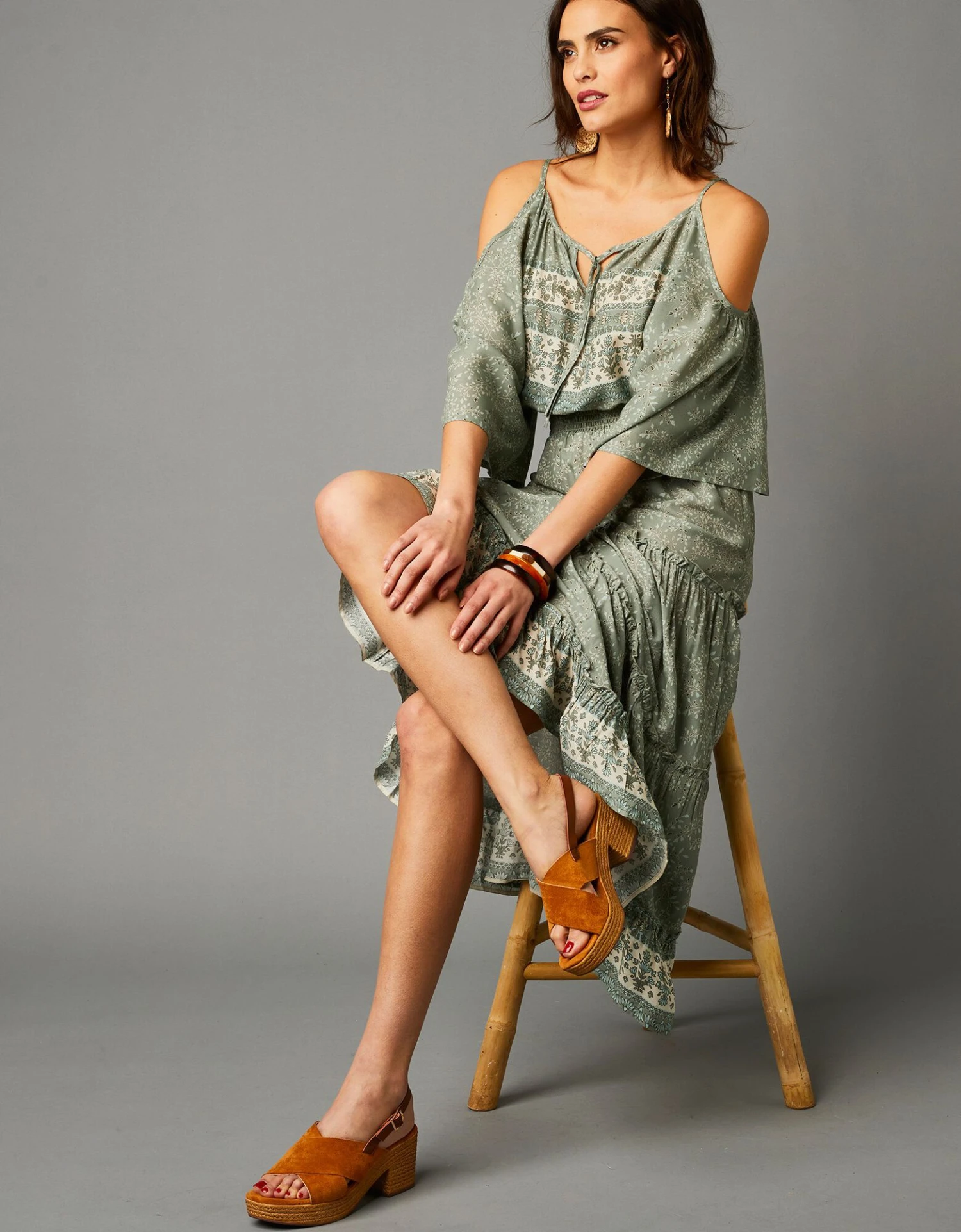 – Jeu de volants froncés sur la partie jupon, dont 1 avec un imprimé placé contrasté