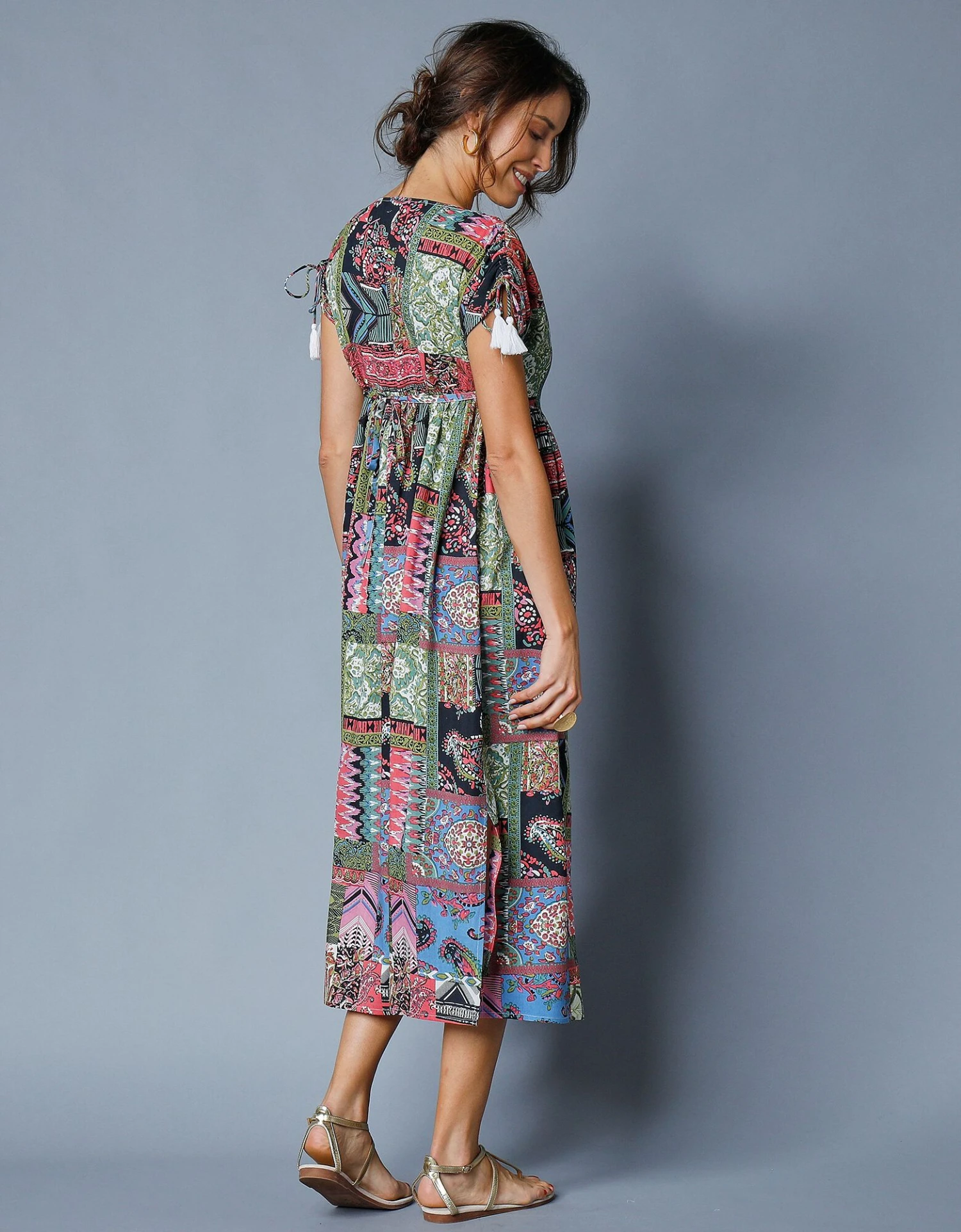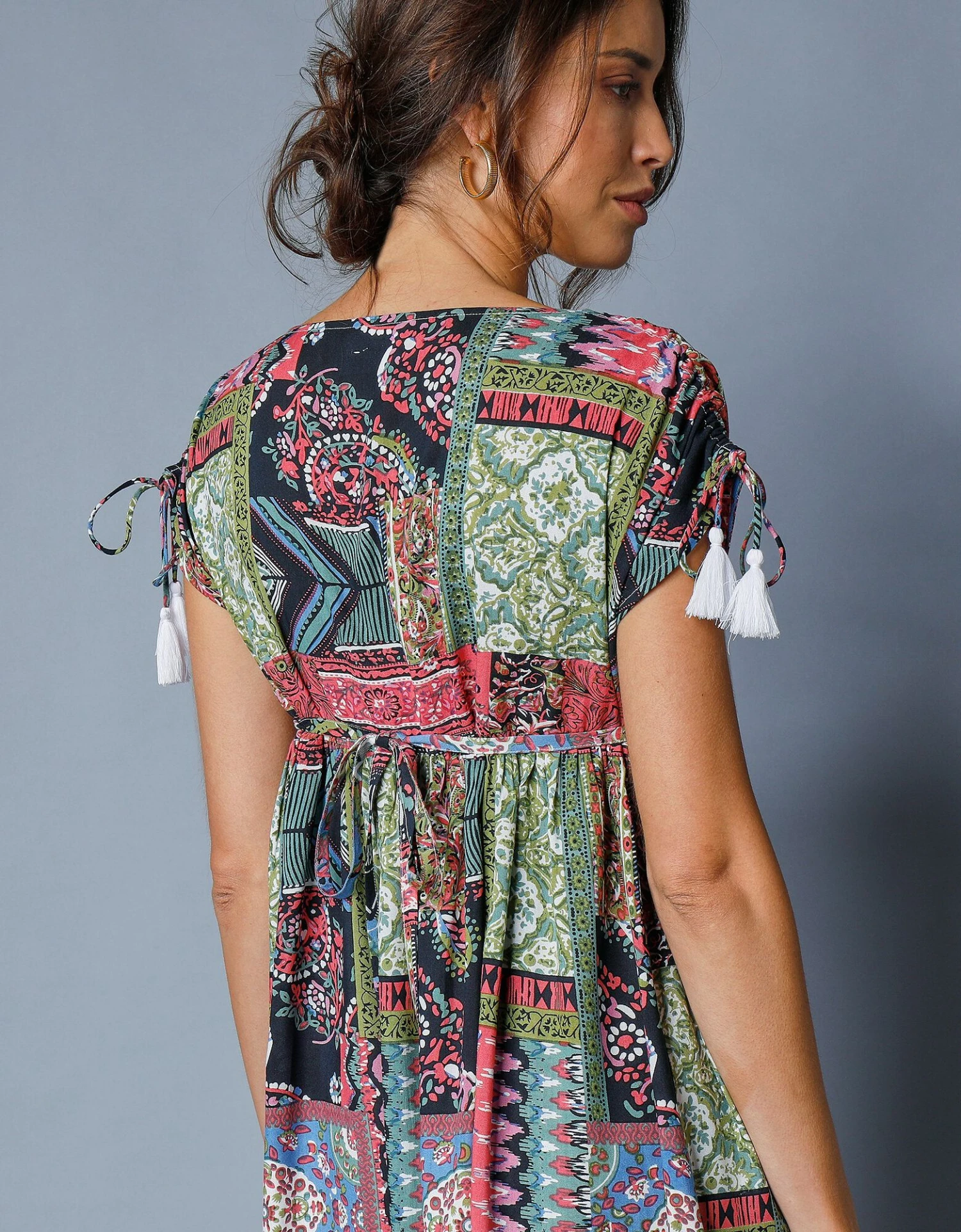 – Liens sur les côtés à nouer au dos pour jouer sur l’effet cintré