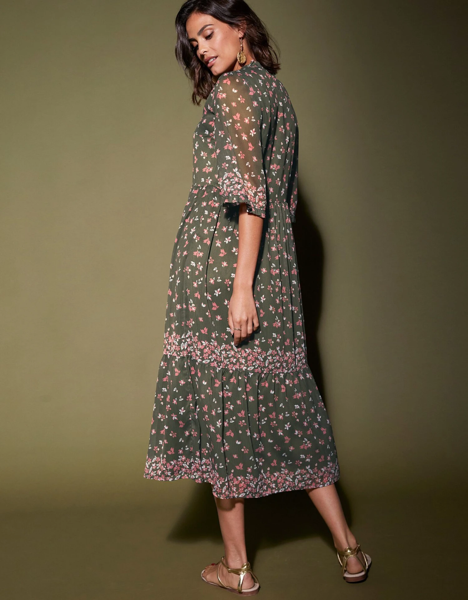 – Manches coudes évasées finies par un petit volant façon rucher