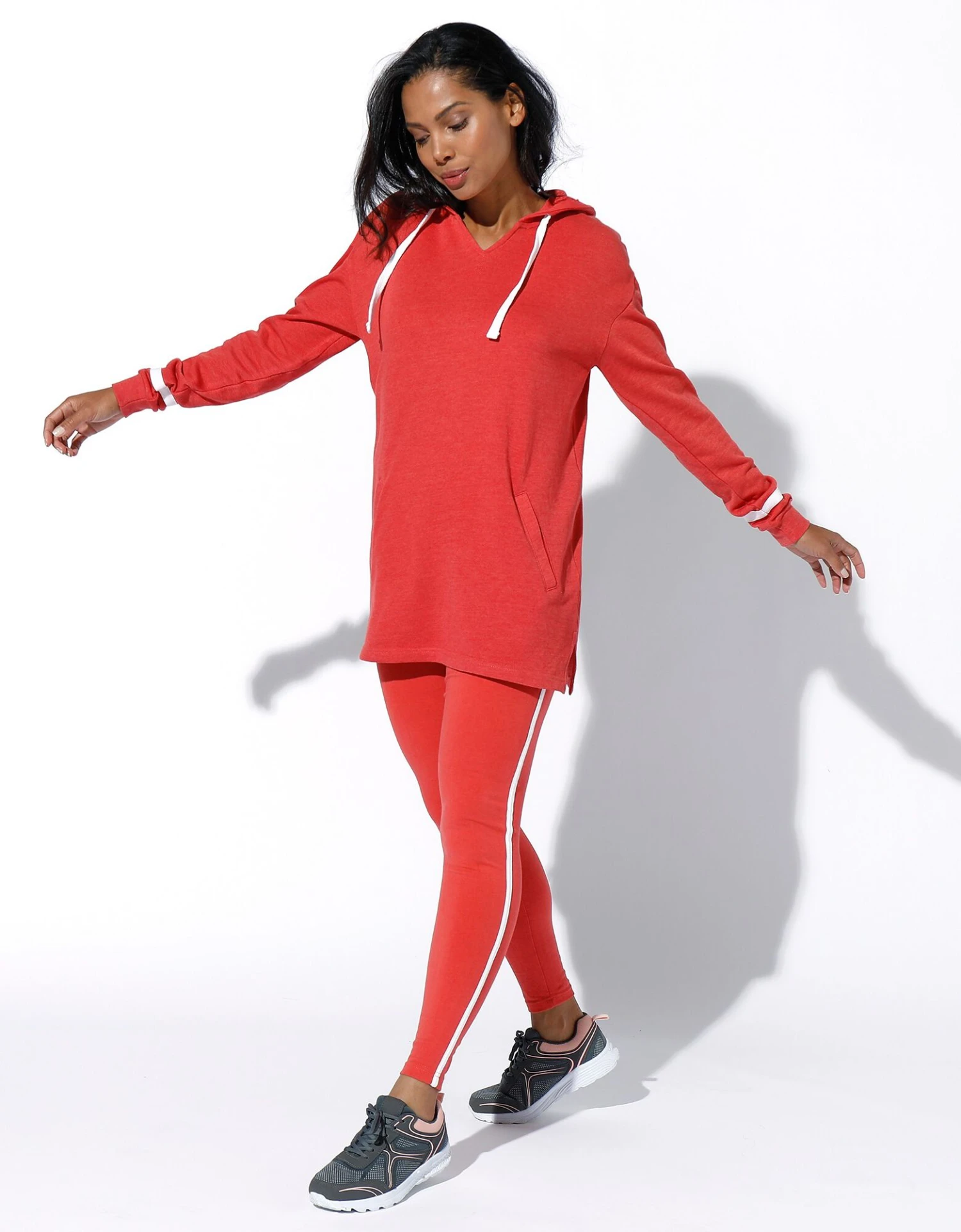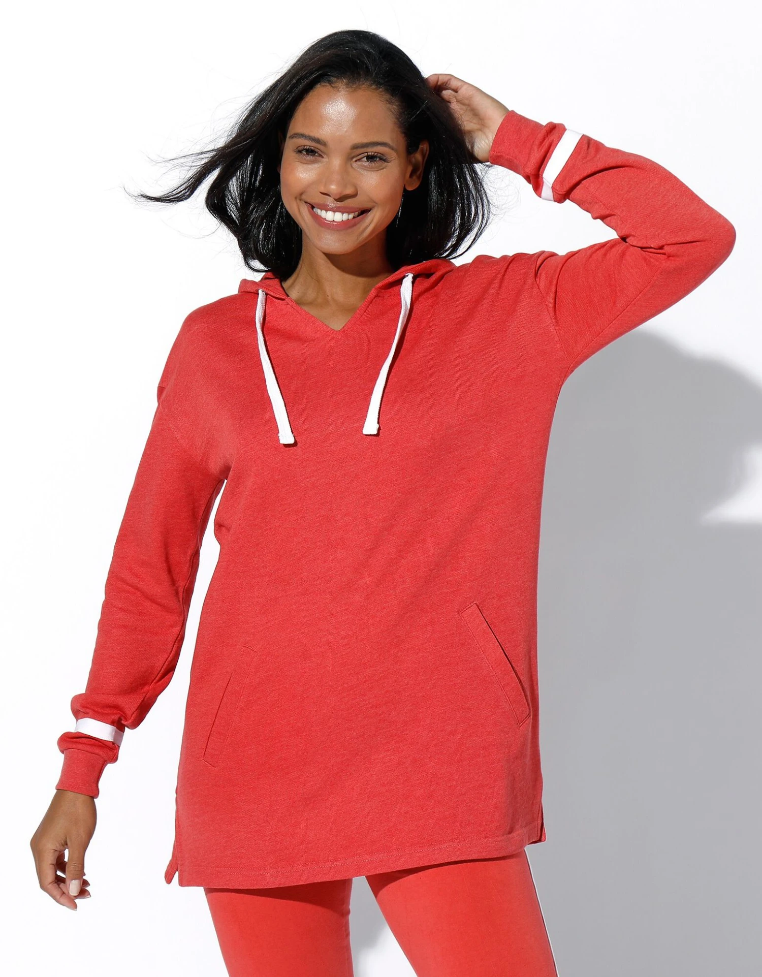– Manches longues avec bande contrastée, finition par bord-côtes