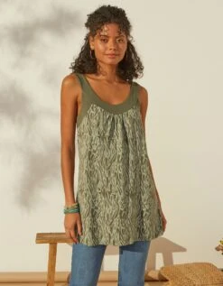 – Encolure ronde réhaussée d’un empiècement uni devant et dos