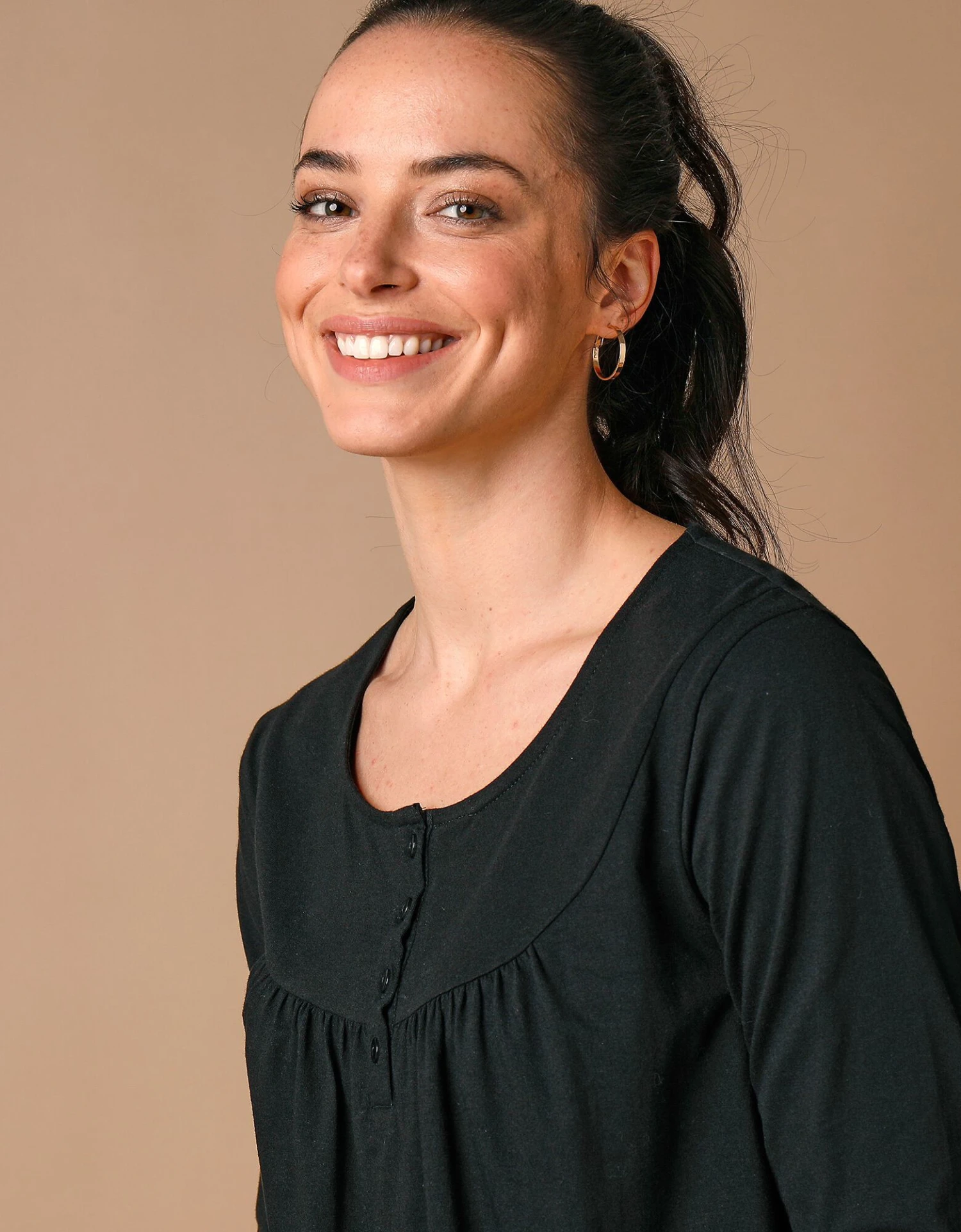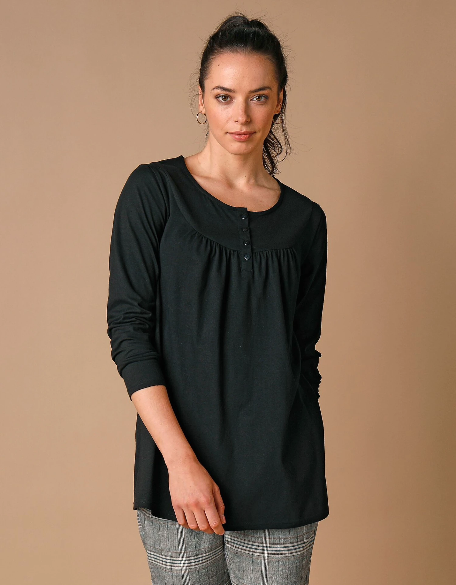 – Fronces sous l’empiècement devant qui dessinent une ligne flatteuse