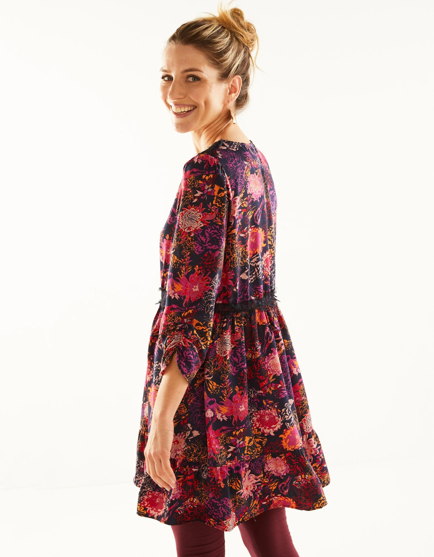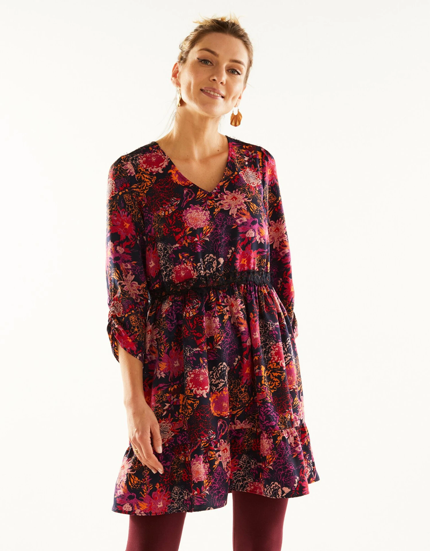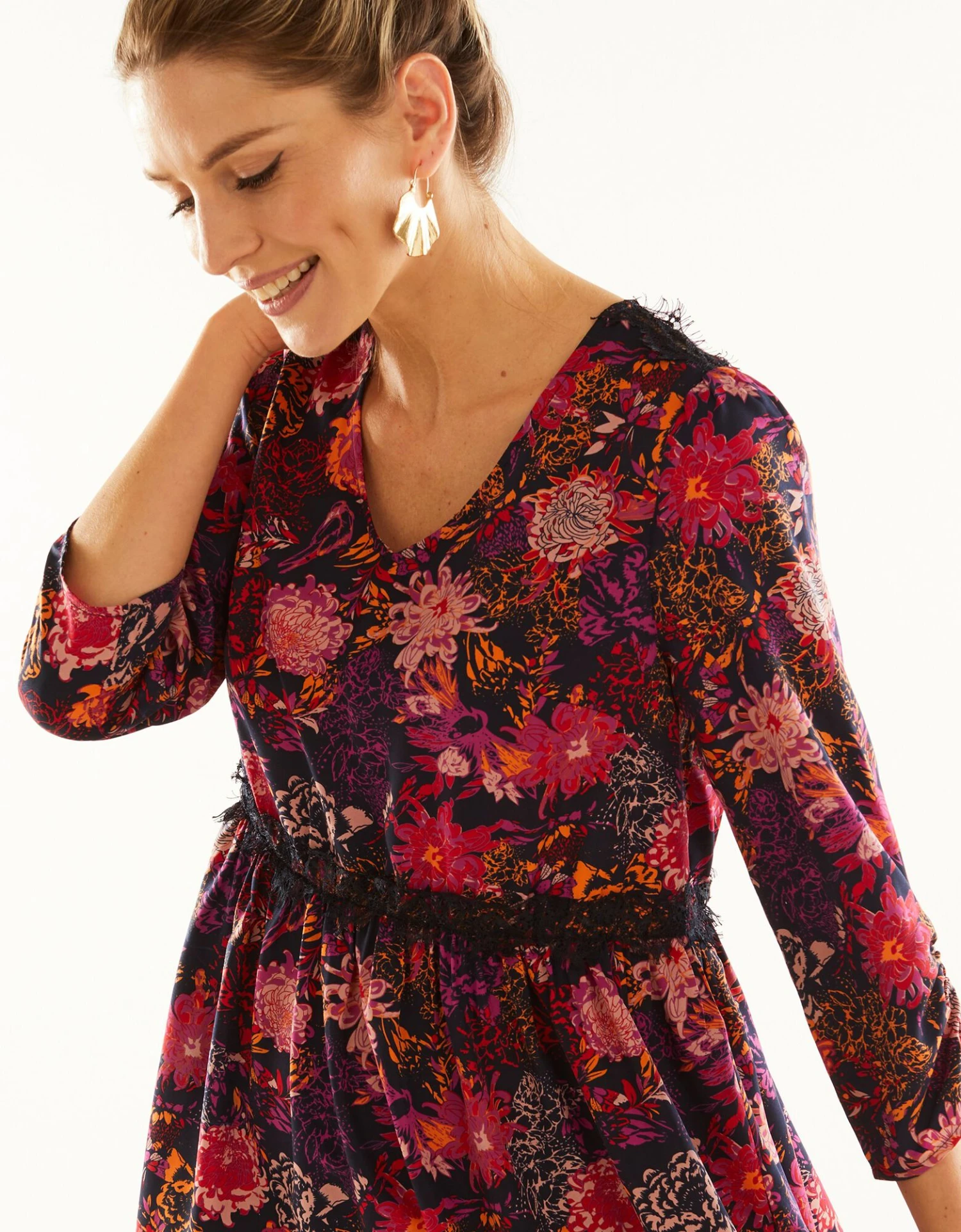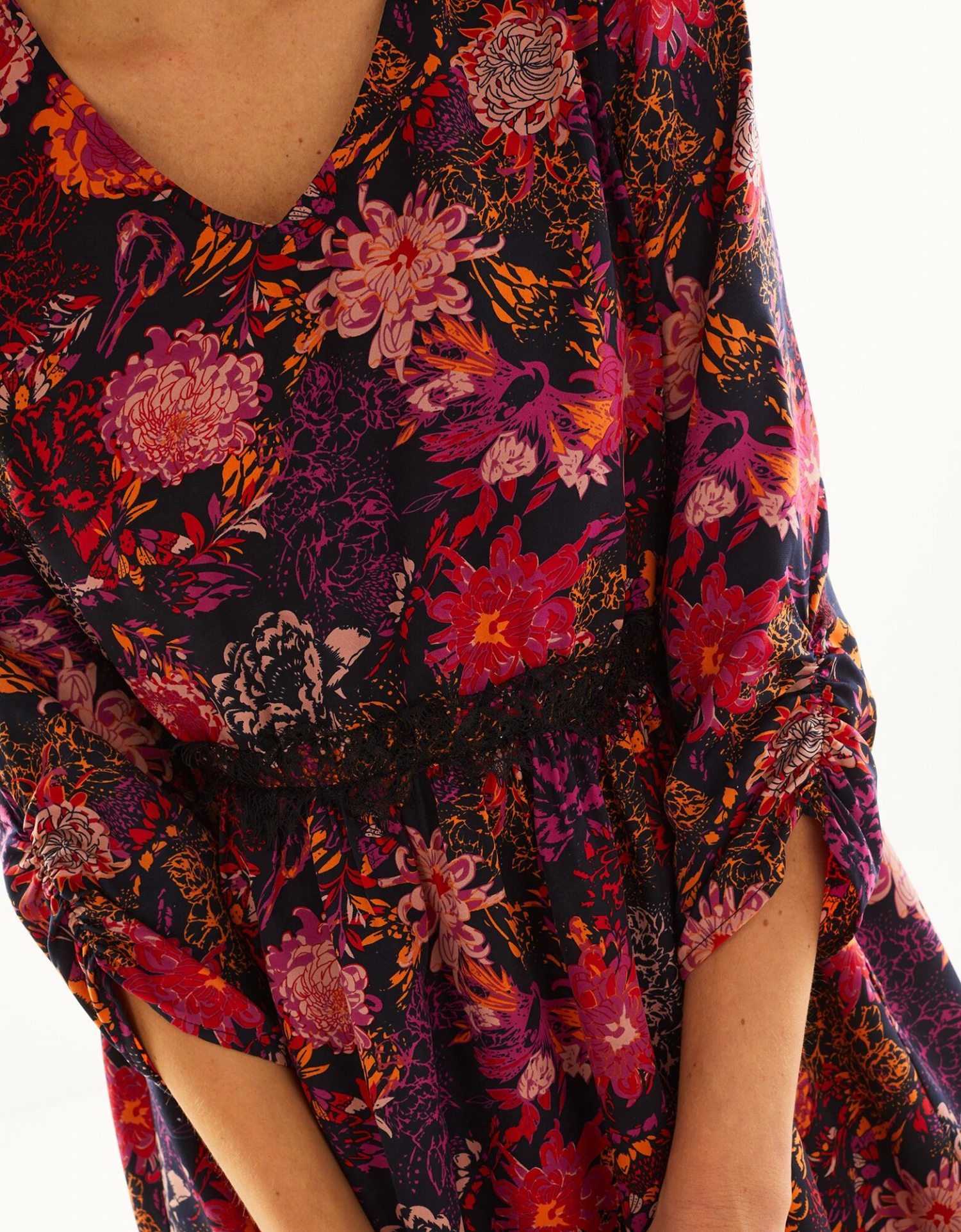 – Manches 7/8ème finitions froncées