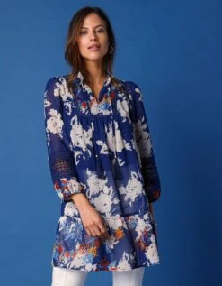 – Manches 3/4 amples élastiquées avec bande de macramé ajouré