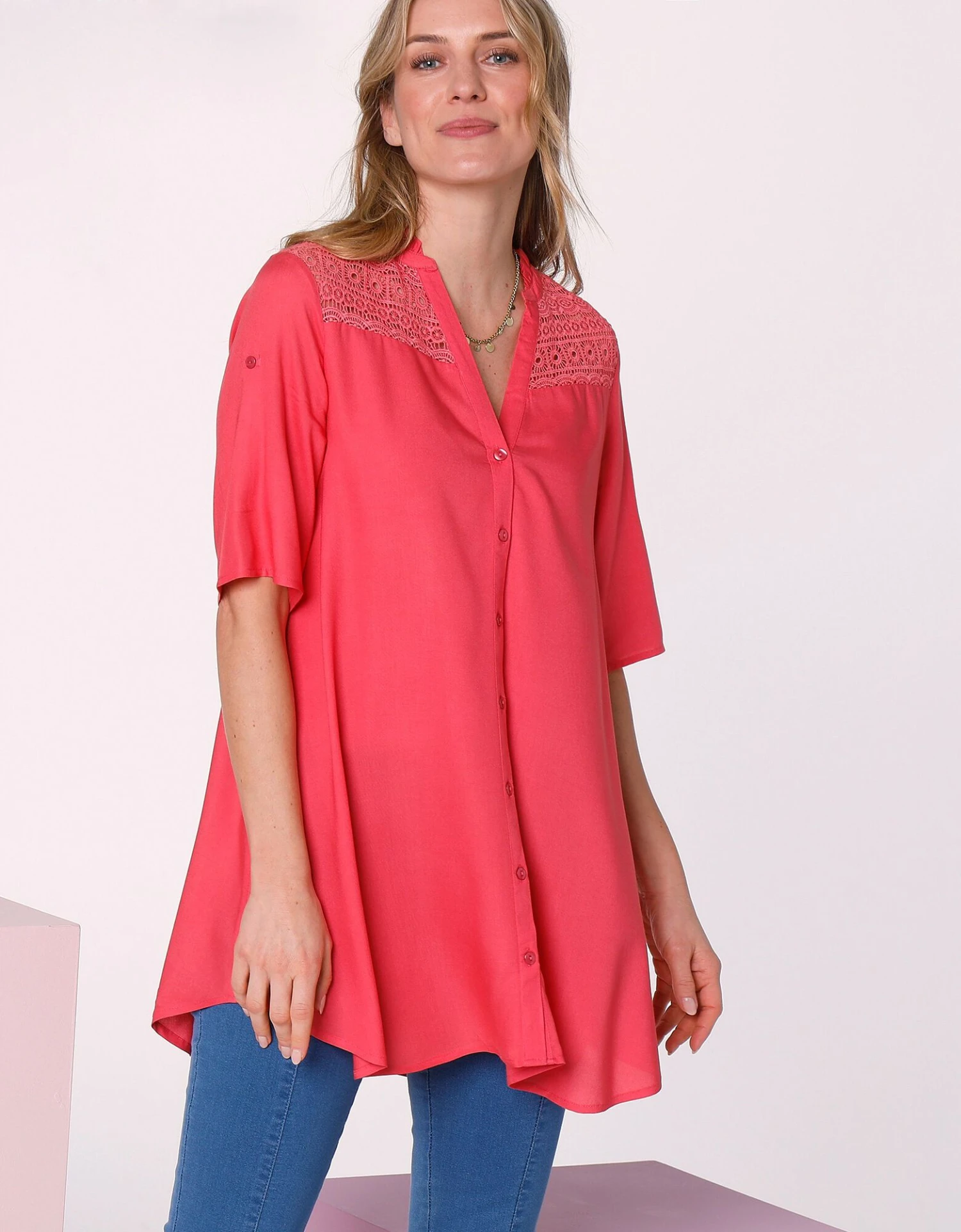 – Empiècement macramé aux épaules devant